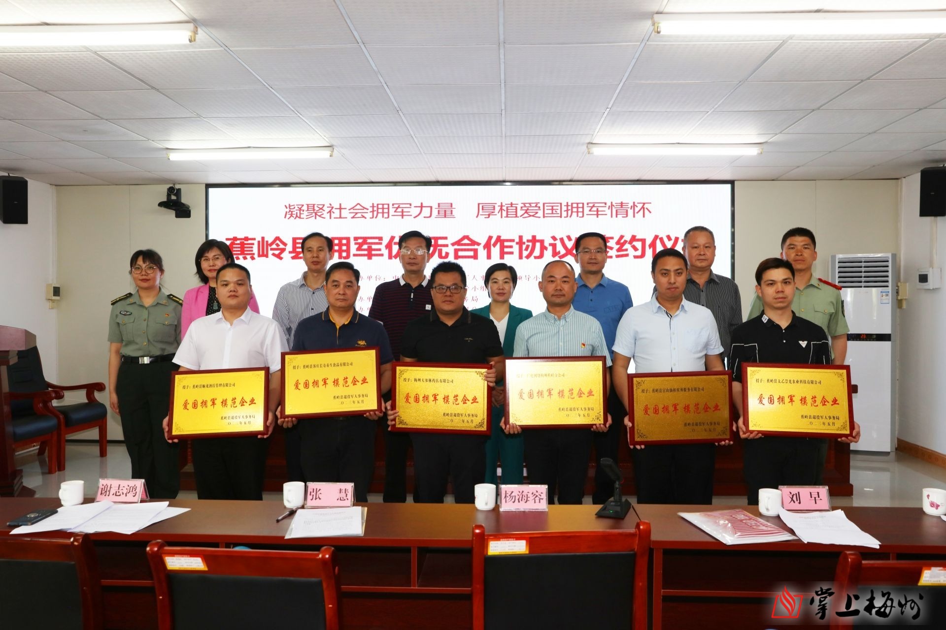 在签约仪式上,蕉岭县退役军人事务局授予6家企业“爱国拥军模范企业”荣誉称号,并颁发了牌匾。