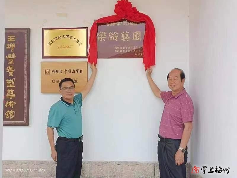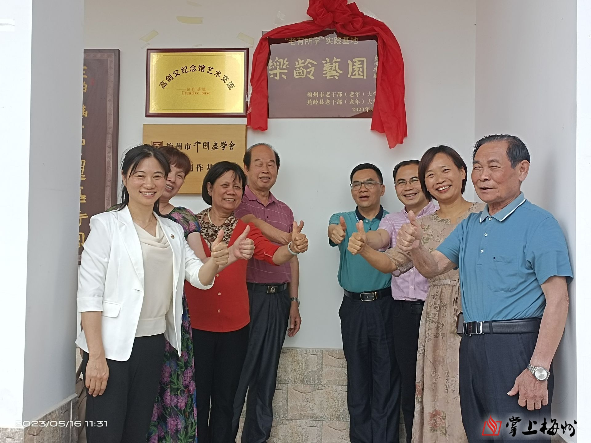 掌上梅州讯 5月16日上午,梅州市老干部(老年)大学与蕉岭县老干部(老年)大学在蕉岭文福的仓海诗廊,举行了“老有所学”实践基地“乐龄艺园”的挂牌仪式。市老干部大学常务副校长黄山松、副校长陈秀萍,蕉岭县委组织部副部长、县老干部局局长黄远志,县老干部大学校长张新忠、副校长张忠兴等参加了相关活动。