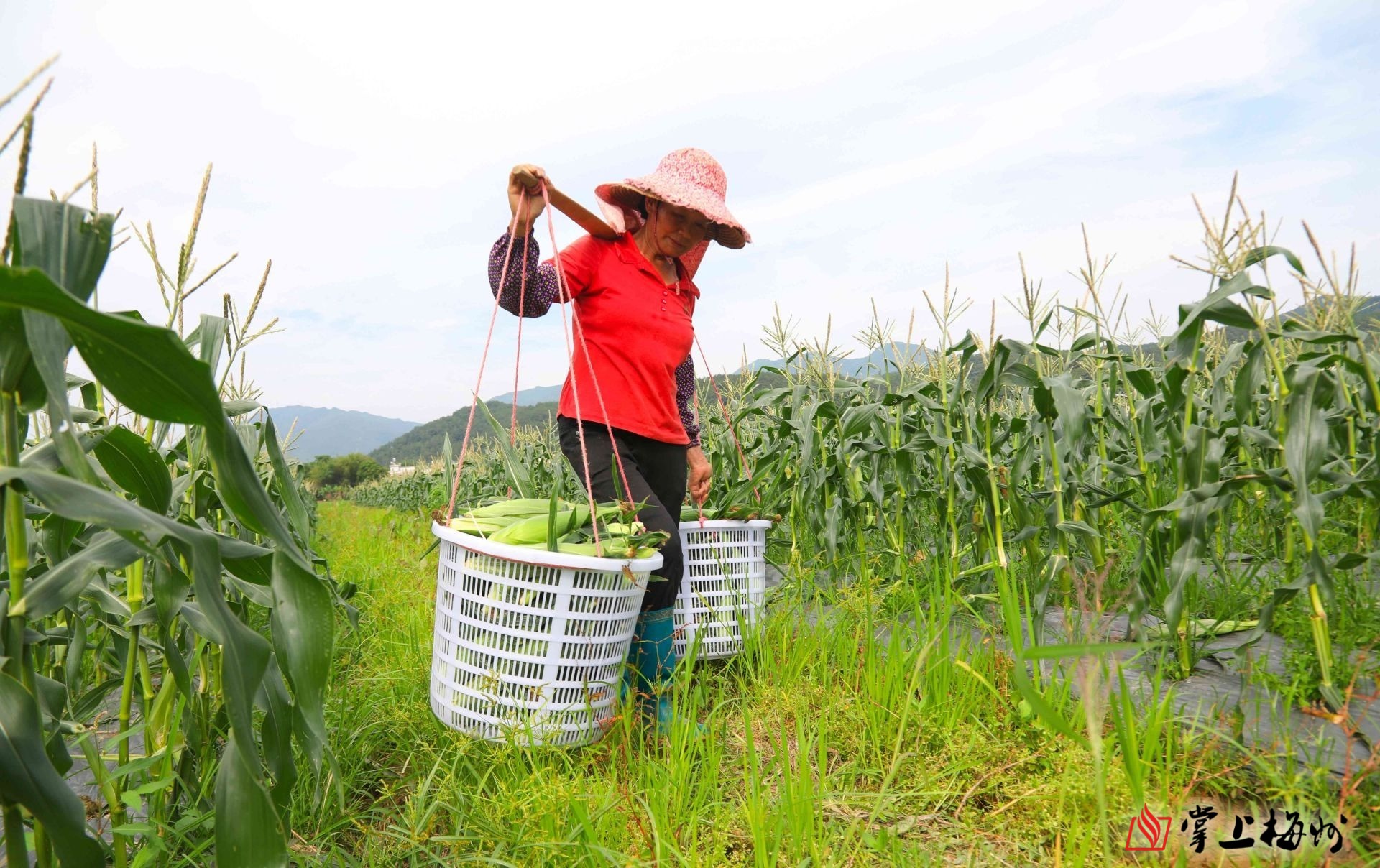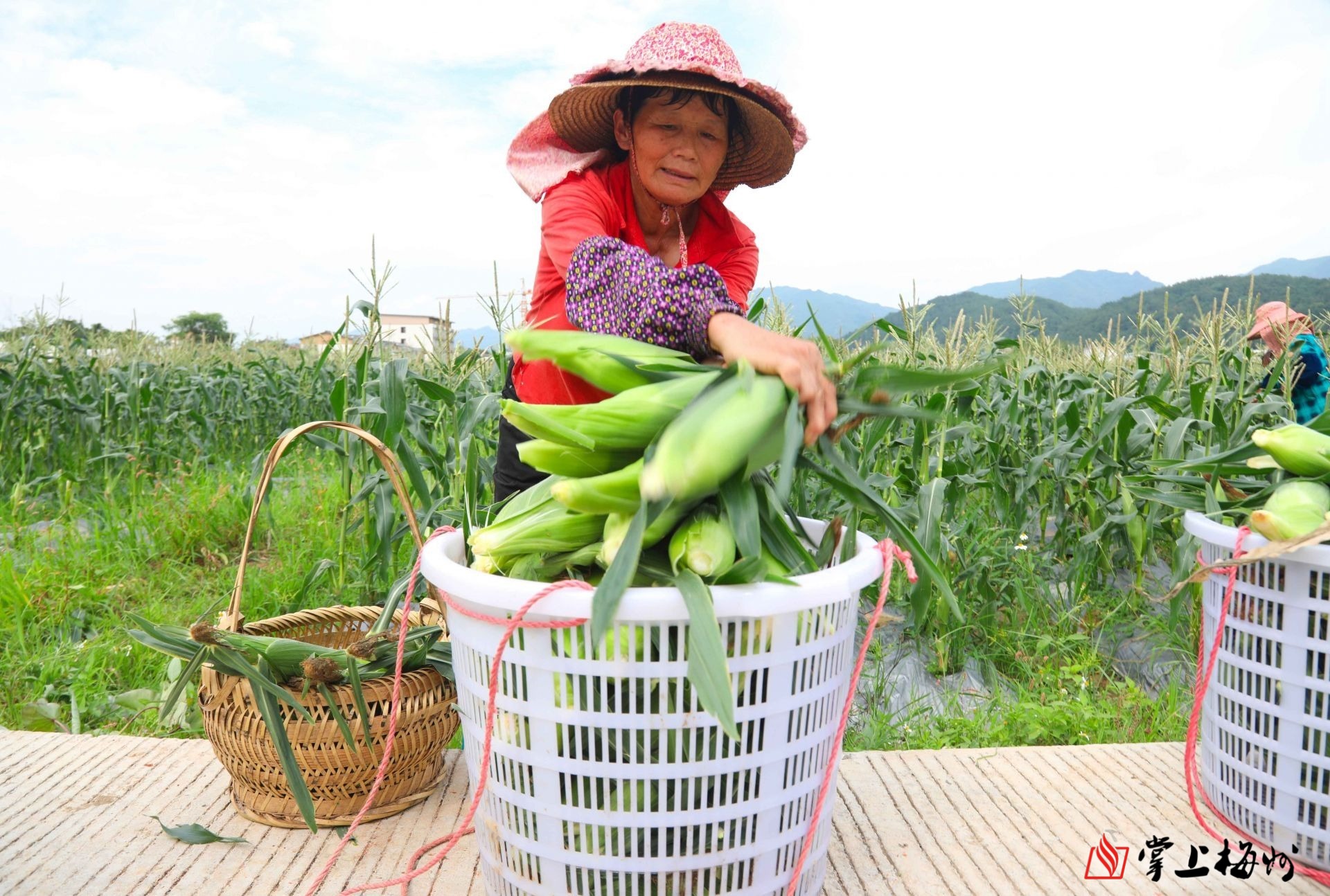夏风吹动谷连天,赢穗压弯三尺杆。时下,蕉岭县三圳镇客家农夫鲜果采摘园的牛奶水果玉米喜迎丰收,走俏市场供不应求。