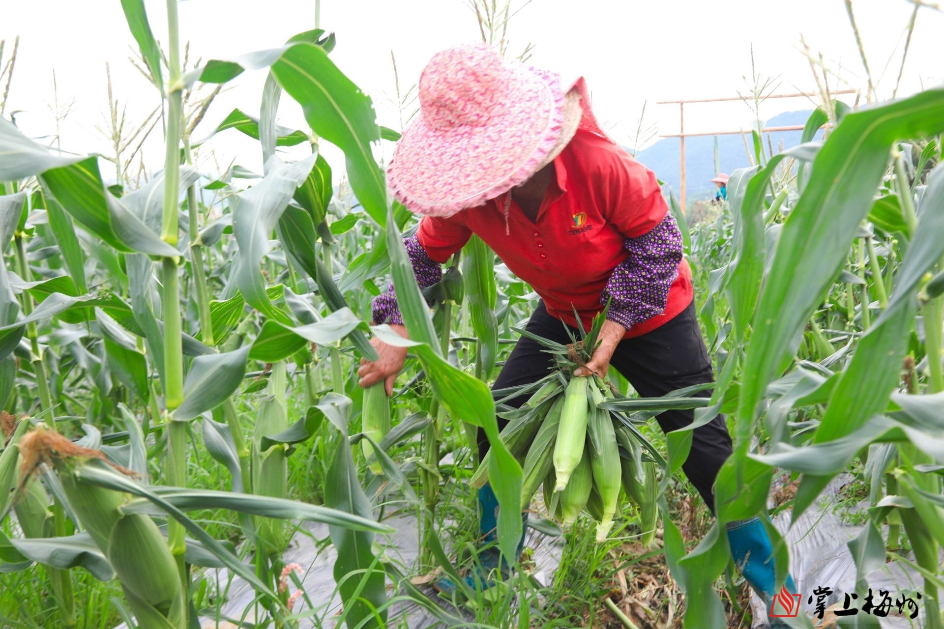 “给你们看一下,这是可以生吃的水果玉米,全部都是爆汁的。”见记者前来,客家农夫鲜果采摘园负责人徐春红积极向记者推介。据其介绍,这种牛奶玉米,适合生吃、也可烹煮。从播种到成熟生长期约为90天。与普通玉米相比,其具有抗病强、皮薄、汁多、含糖量高等特点,有较高的营养价值和广阔的市场前景。“我早年曾在广州打拼,自2022年从原先的企业接手过来后,便开始着手打造客家农夫户外拓展基地,大力发展果蔬种植、开发团建拓展。目前,基地拥有380亩种植区域,带动周边20多名村民在家门口固定就业。”徐春红表示,目前,玉米采摘园面积约为15亩,以休闲体验采摘为主,也会通过电商渠道销售。