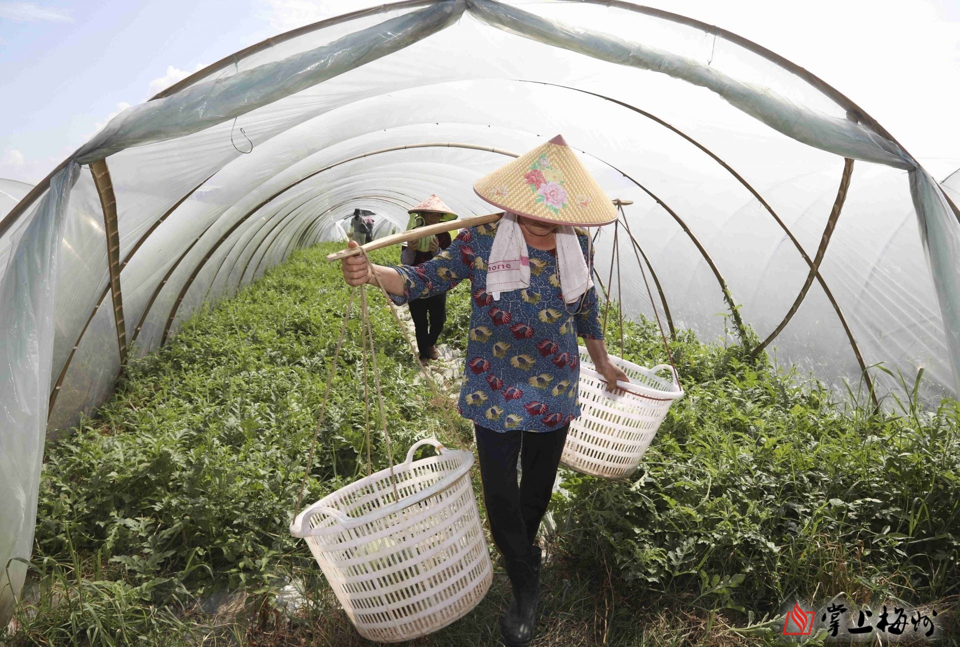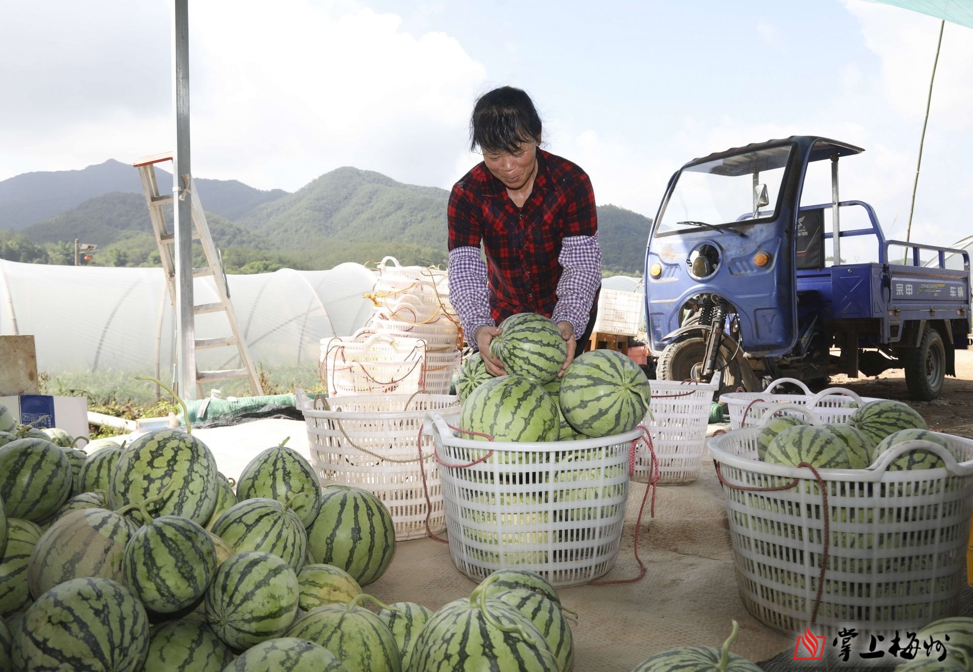 盛夏一场雨过后,行走在蕉岭县新铺镇金沙村西瓜基地的乡道上,湿热的空气里混着一股香甜气息。站在路边远眺,一望无垠的西瓜大棚里,碧绿色的藤蔓延伸至远方,果农纷纷抢抓时机,躬身寻觅采摘熟透了的西瓜,瓜棚里不时传出阵阵欢声笑语。
