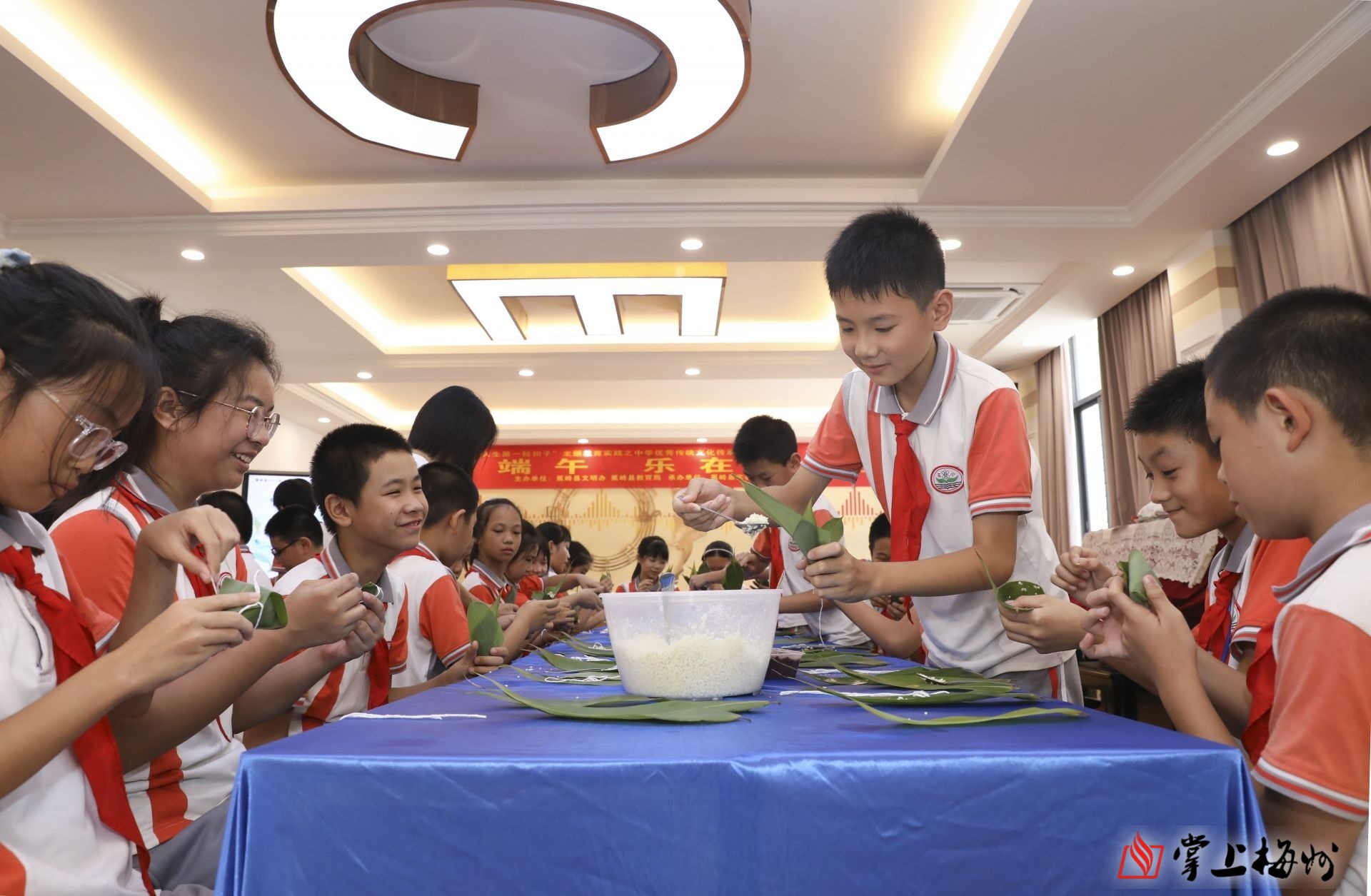 “老师你看,我包的粽子好看吗?”日前,在蕉岭县实验小学,学生正在老师的指导下,有序卷粽叶、放米、捆扎,不一会儿便将一个个棱角分明的小粽子制作好。看着自己的劳动成果,孩子们的脸上洋溢着喜悦,纷纷举起自己亲手包的粽子竞相向老师展示。该校校长夏映芬表示,通过举办包粽子活动,不仅锻炼了学生的动手能力、生活技能,更重要的是让学生在感知、实践的过程中,传承端午传统文化。