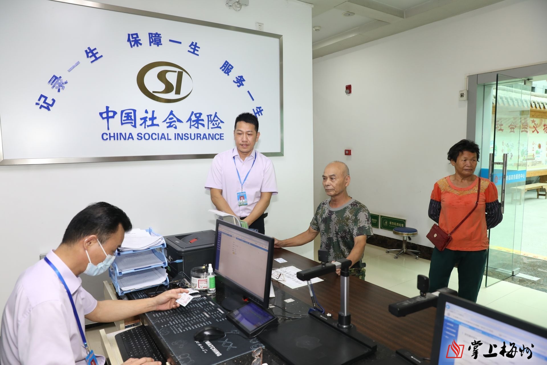 在蕉岭县行政服务中心社保窗口,工作人员热情细致为群众办理各项业务。