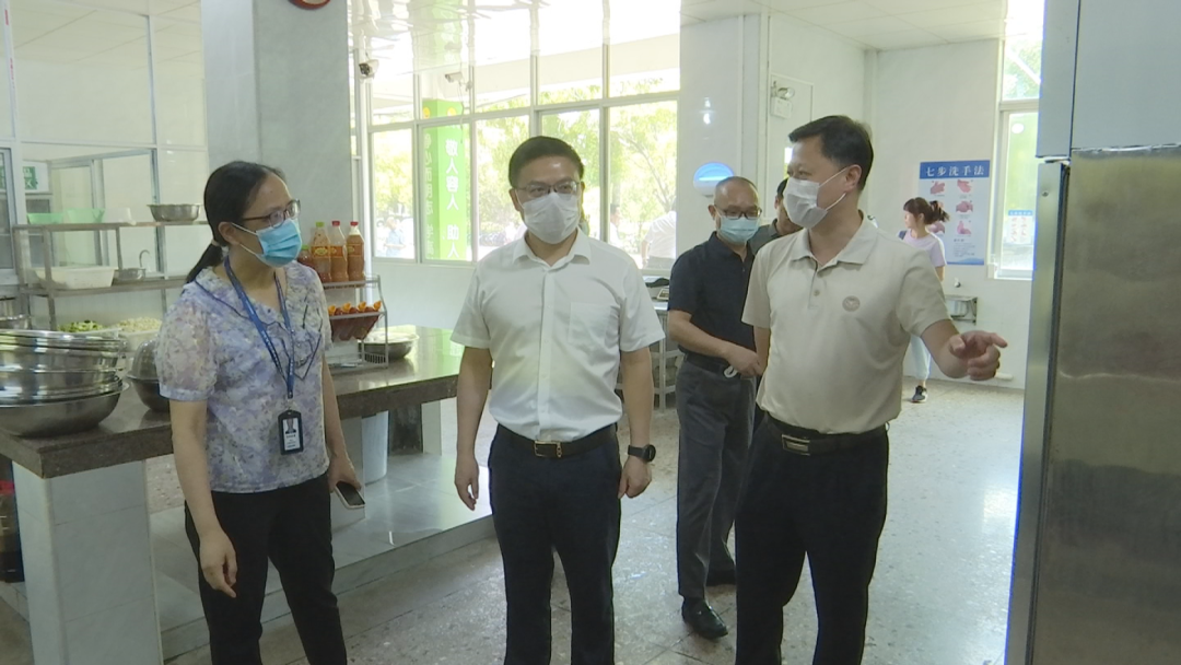 刘裕君一行来到学校小卖部、学校食堂,实地查看卫生状况、就餐环境、食品加工操作场地,详细了解校园食品安全工作有关情况。