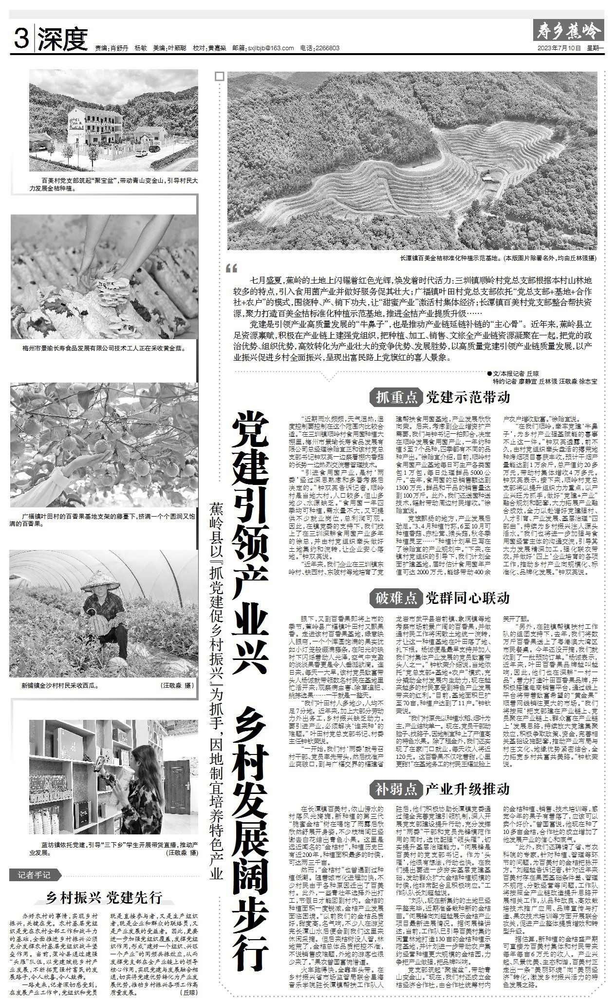 一路走来,记者深切感受到,在发展产业工作中,党组织和党员既是直接参与者,又是生产组织者,既是企业和群众的联络员,又是产业发展的受益者。因此,更要进一步加强党组织覆盖,发挥党组织作用,形成“建好一个组织、兴旺一个产业”的同频共振效应,从而发挥党支部在全产业链上的领导核心作用,实现党建与发展融合相通,切实将党建优势转化为产业发展优势,推动乡村振兴各项工作高质量发展。