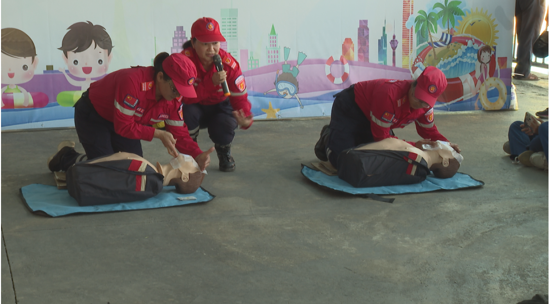启动仪式后,举行游泳安全知识讲座及溺水救治演示。县应急救援协会队员结合发生在身边的真实案例,向学生讲解防溺水的重要性和注意事项,讲述发生溺水的情景,传授矿泉水瓶、救生杆、救生绳等正确的使用方法,教会学生遇到溺水抢救、气道异物梗塞等情况下的现场急救方法,示范了人工呼吸、心肺复苏等急救技能,让学生们在互动中增强了防溺水安全意识,提高了防溺水自救互救技能和自我防护能力。