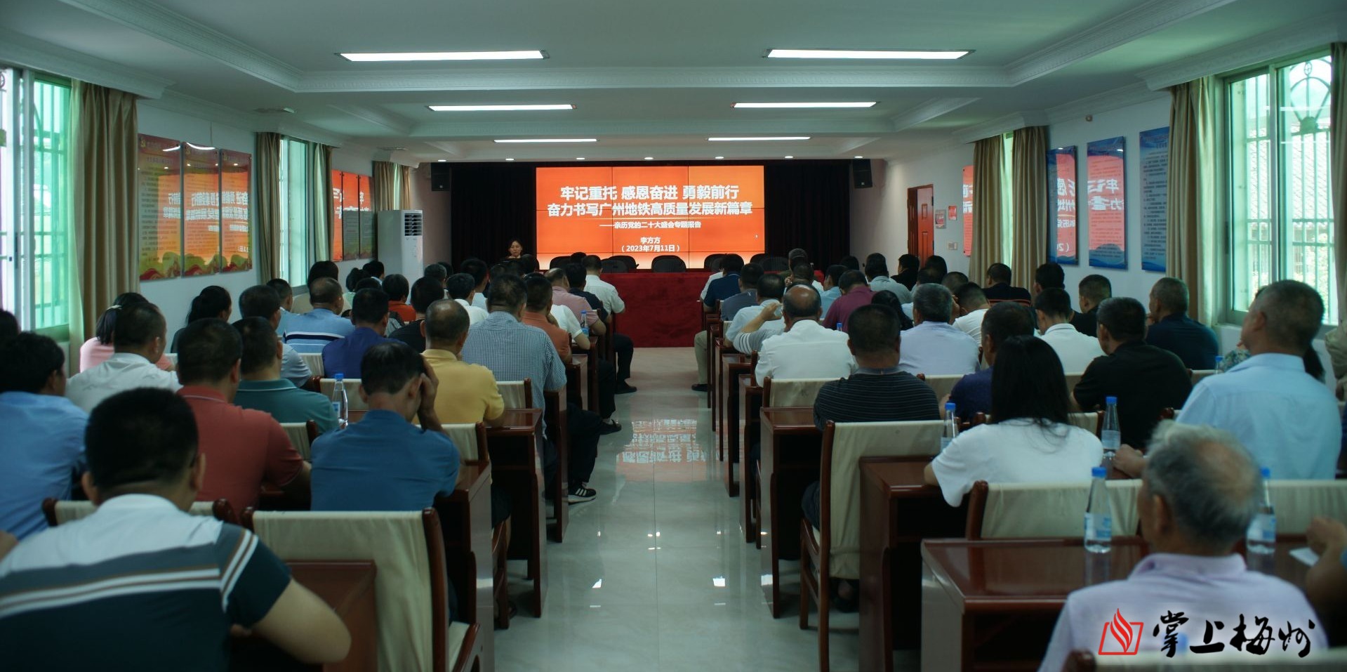 掌上梅州讯 日前,蕉岭县广福镇举行“牢记重托、感恩奋进、勇毅前行”党建共建暨党的二十大代表宣讲活动。蕉岭县副县长李杜强,广州地铁运营事业总部党委副书记、工会主席卢锦生,党的二十大代表、广州地铁运营总部高级客车司机李方方,共建双方党组织代表、广福镇党政领导、驻镇帮镇扶村工作队、各村(社区)党员代表等共计110余人参加活动。
