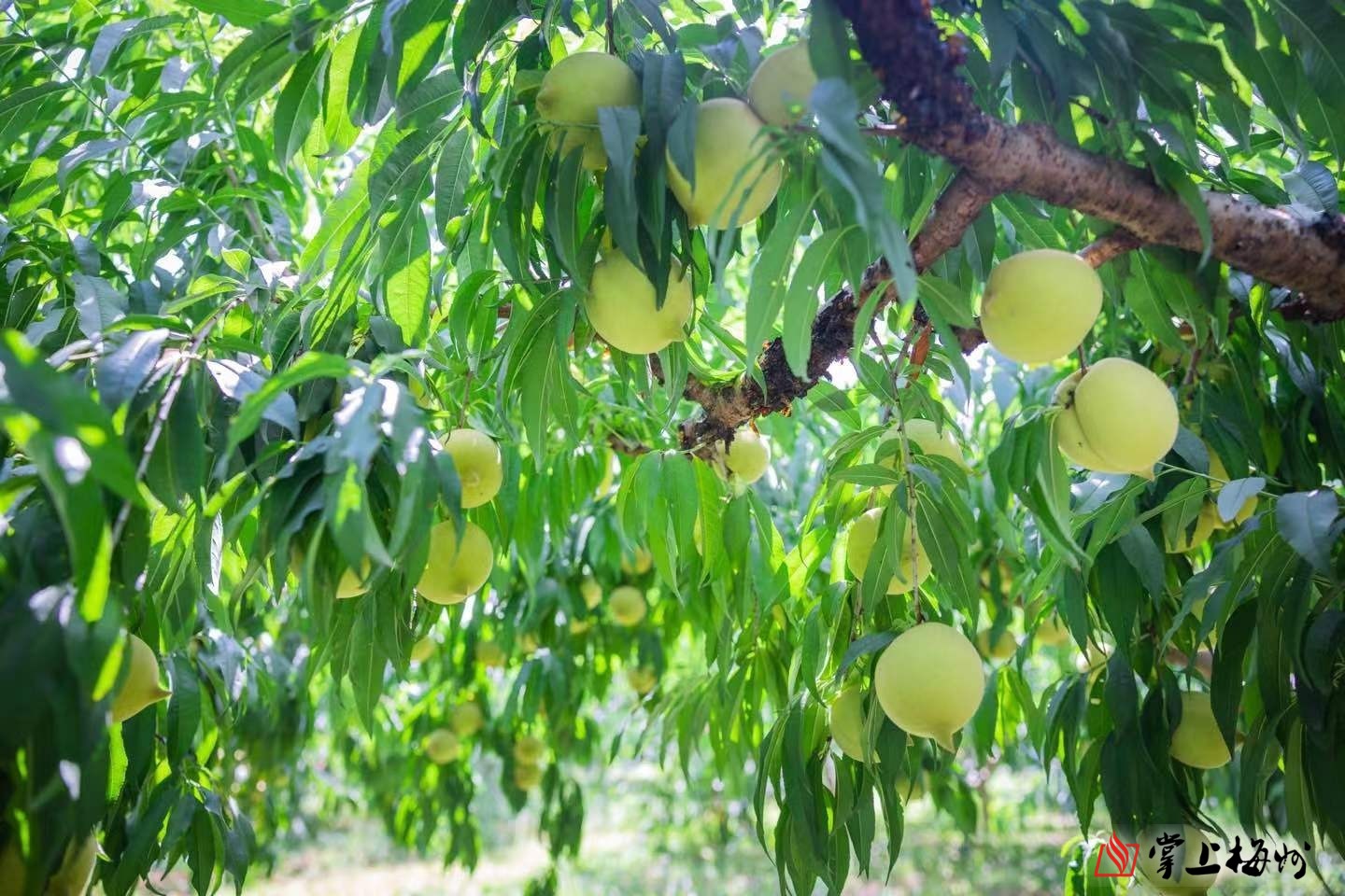 炎炎夏日,走进桃花源山庄,映入眼帘的便是一片郁郁葱葱的桃林。穿梭林间,揭开掩映的桃叶,顿时,空气中一股香甜气息弥漫开来:成人拳头大小、青红泛白的鹰嘴桃正式“露脸”,在阳光的自然润色下,显得格外诱人。另一边,桃园里随处可见桃农、游客忙碌的身影,采摘、入袋、分拣、过秤、装箱,沉甸甸的果实让众人喜上眉梢。