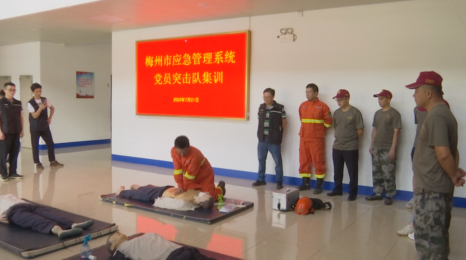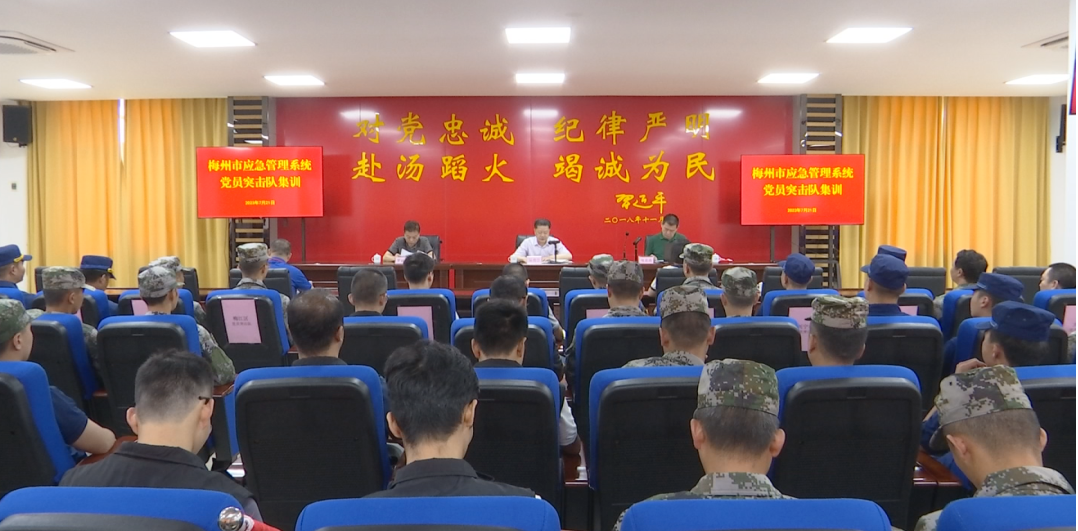 此次集训市应急管理系统10支党员突击队所有成员参加,集训围绕思想建设和技能提升两方面开展。动员会上宣读了《梅州市应急管理系统党员突击队管理制度》,进行了《弘扬伟大建党精神 锻造党员应急铁军》专题辅导,带领党员突击队队员重温入党誓词,进一步加强突击队员的思想建设,强化纪律意识,更好完成职责使命。技能提升方面包括体能训练,观摩市矿山救护队灭火演练,进行心肺复苏、风力灭火机实操和器材装备操作,全面提升党员突击队的应急抢险救援能力。