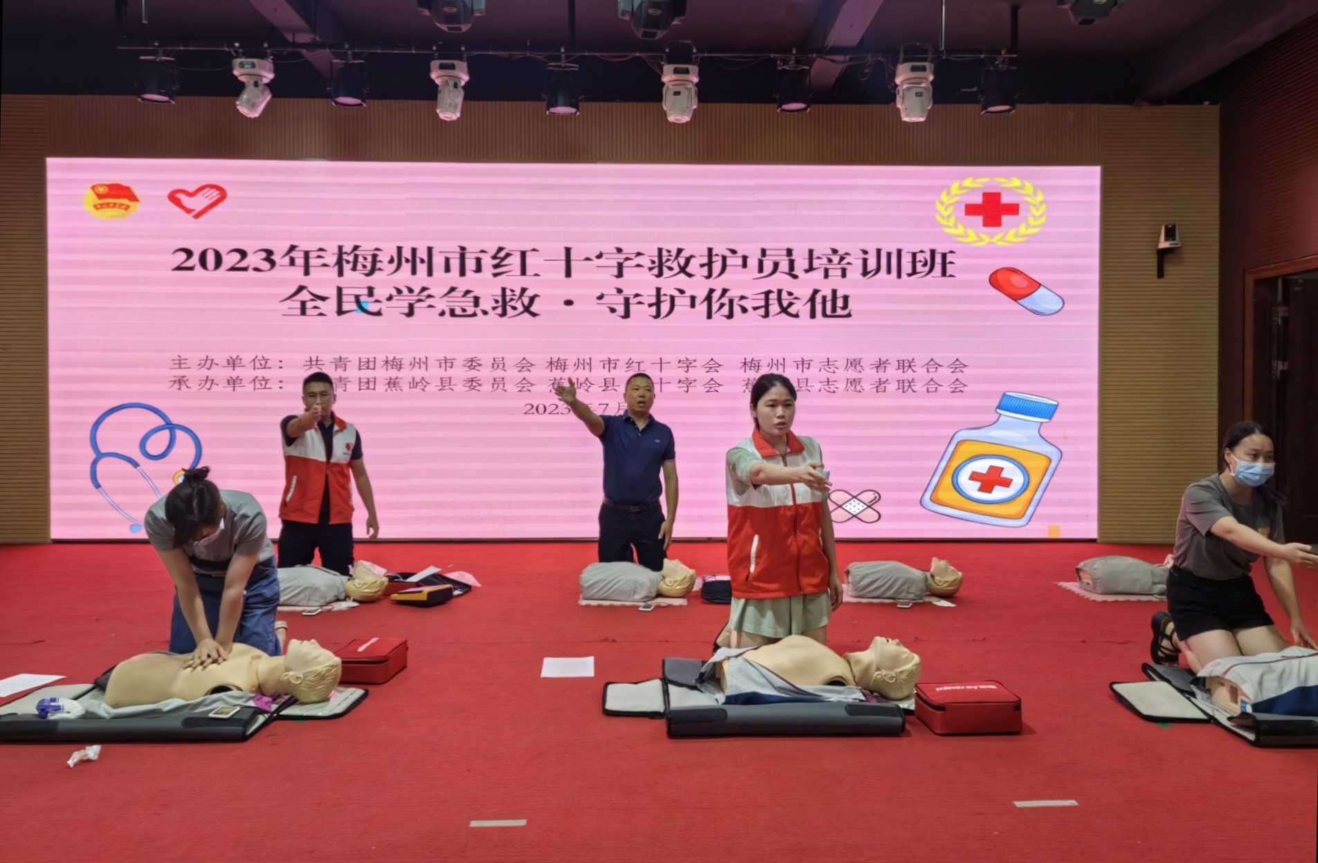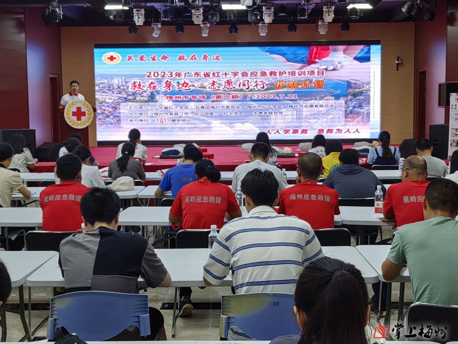 掌上梅州讯 人人学急救,急救为人人。日前,省市红十字会“全员学急救·守护你我他”应急救护公益大讲堂梅州专场第六期在蕉岭县开讲。共有来自各镇乡村振兴志愿者,县直相关单位、企业以及各协会等65名学员到现场参加培训,学习这堂关爱生命的“必修课”。活动还为参训学员派送了“应急救护知识大礼包”。