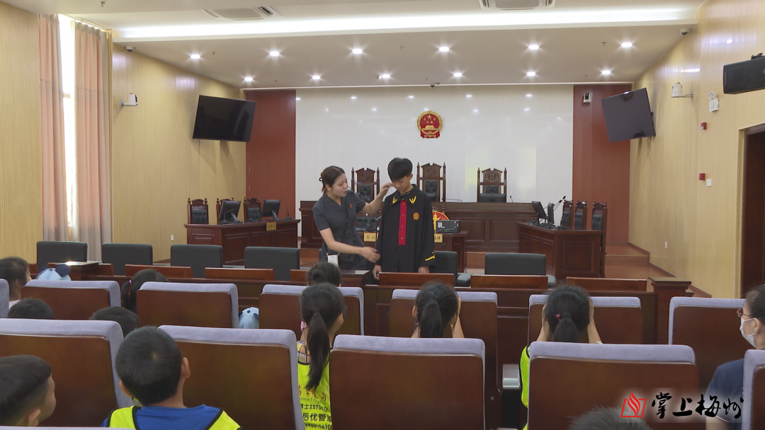 活动当天,学生们在工作人员的带领下来到第一审判法庭,参观并了解法庭的功能结构,学习法徽、法槌、法袍的内涵意义,还穿上法袍、坐上审判席,体验当“小法官”的感觉,切身感受法律的庄重威严。