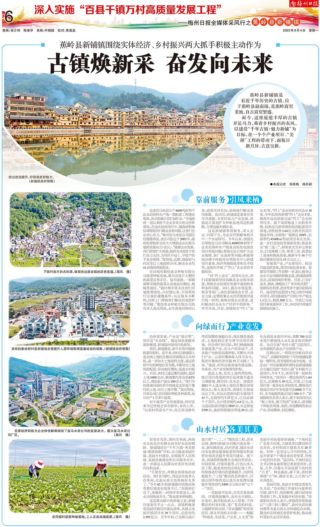 这是群众眼中的新铺之变,新铺圩镇变化不止一点点。该镇积极谋划美丽圩镇项目建设清单,共建立美丽圩镇项目库39个项目,总投资约2.585亿元。至今年初,已全面完成古镇古街“一、二、三”期改造工程、滨水公园、蕉岭(新铺)乡村振兴创业第一站、新东路改造、沿河步道、镇区生活污水处理设施及配套管网建设和农贸市场改造提升等项目建设。接下来,该镇将积极整合全域自然景色、田园景观、圩镇风貌等,打造山水人居工程,推进商住综合体征地工作,持续推进圩镇内街道路提升、内街风貌提升、“三线”整治改造和提升、圩镇公园升级改造以及污水处理设施提升等投资约5400万元的古街“七个一”项目。