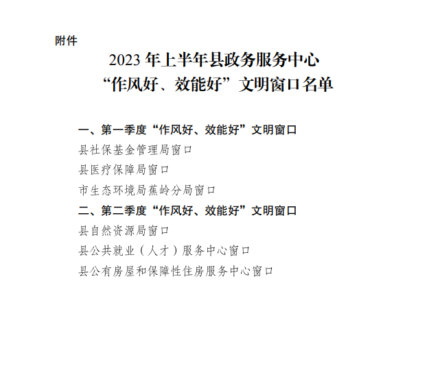 2023年上半年县政务服务中心“作风好、效能好”文明窗口名单