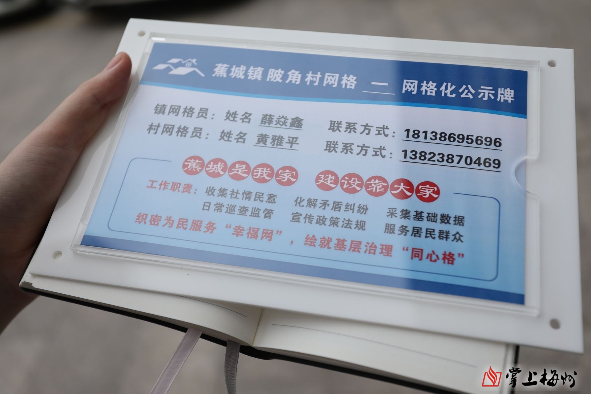 陂角村每家每户门口都有一块网格化公示牌,群众可以根据网格排上的信息,第一时间联系网格员。