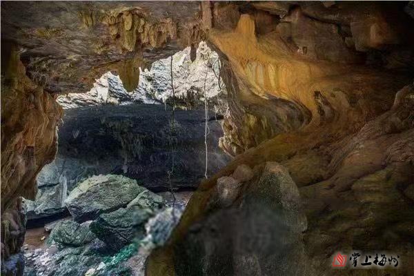 在文福镇,不仅有高空美景,还有隐藏在山洞里的地下奇观,叫仙人洞,就是仙人居住的意思,而这座桥上景叫做仙桥飞渡。