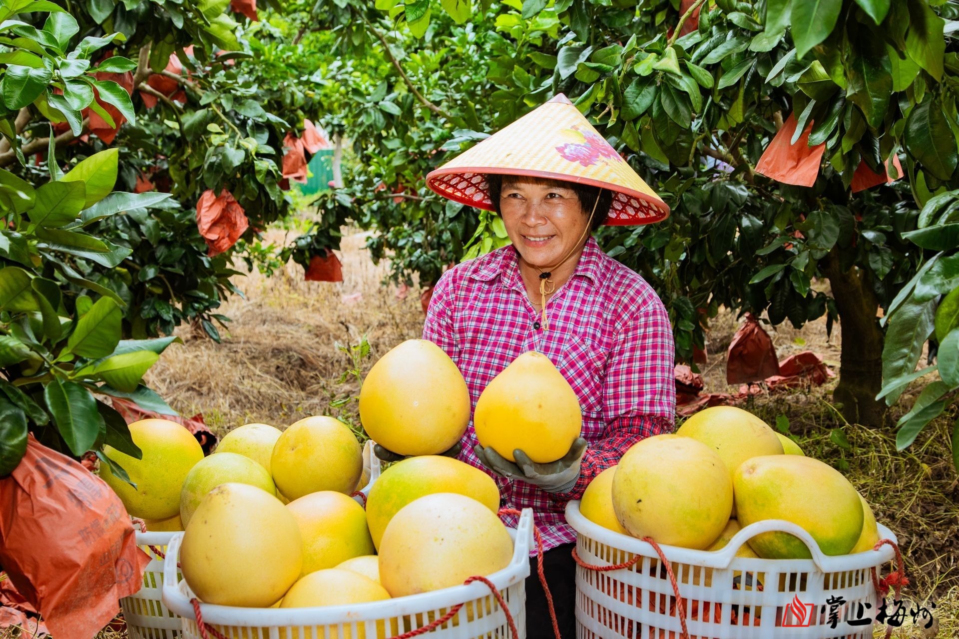 另一边,在蕉岭县新铺镇金沙村的村集体经济示范园内,漫山遍野的柚树上挂果整齐饱满、长势喜人,柚农喜笑颜开忙采摘。新鲜、饱满的柚子像精心种植的黄宝石一般,闪耀着黄橙色的光泽。“园内种植面积达60亩,有三红蜜柚、沙田柚、新品种泰国青柚多个品种,其中,三红蜜柚总产量达15万斤,销售价较去年有所提高,总产值约40万元。”新铺镇金沙村党总支部书记、村委会主任陈子龙告诉记者,果园还聘请了当地村民参与基地管护工作,既延长了村集体经济产业链,还能带动村民增收,让当地群众对柚果产业发展充满信心。