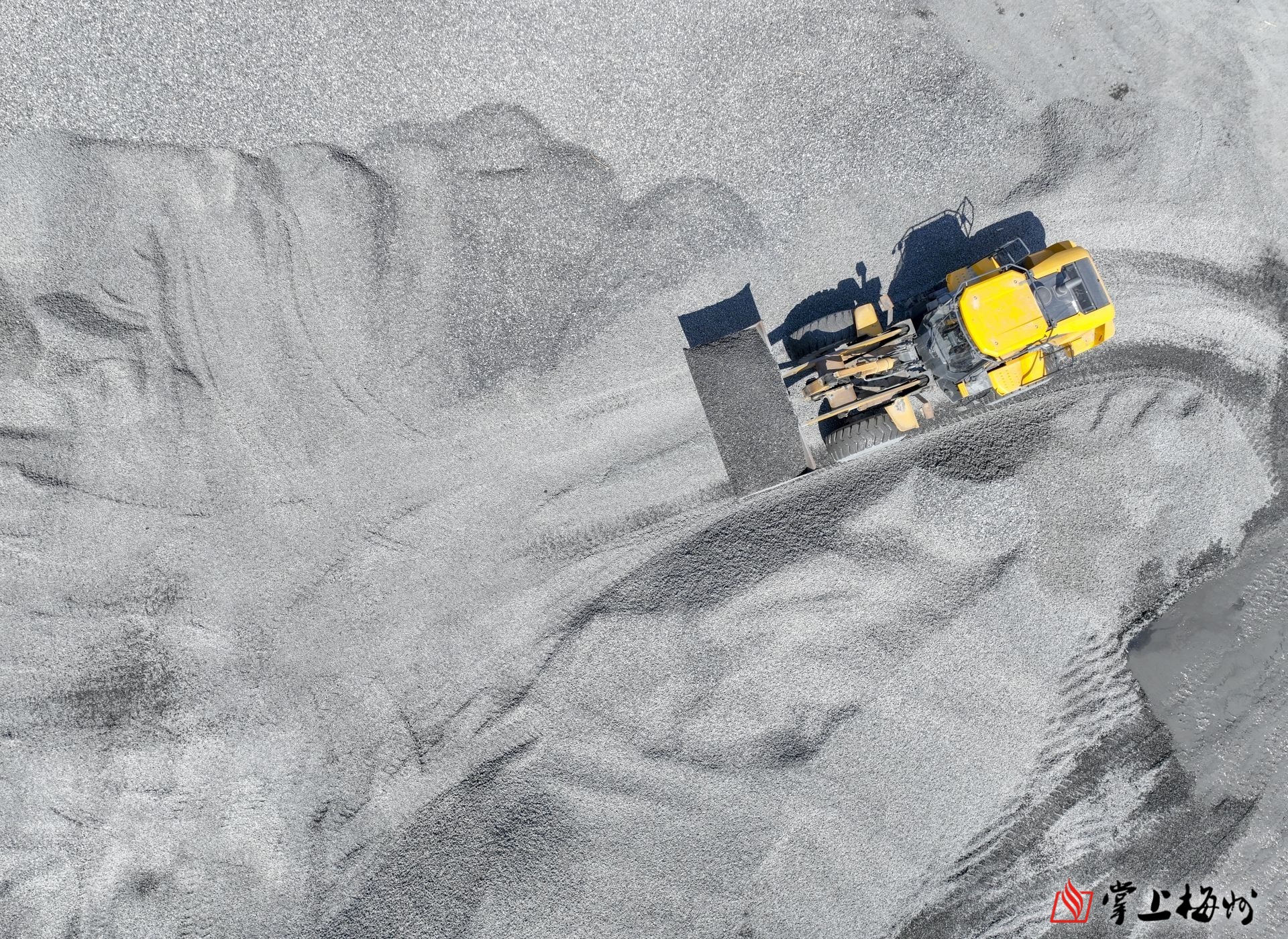 ▲在石料场上,一堆堆碎石如同小山丘般,等待被破碎加工后销往其它厂家制作沥青熟料。
