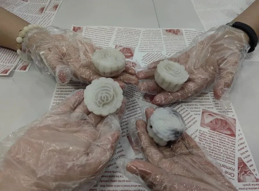 月饼师傅为青年们介绍了制作冰皮月饼的技巧、制作过程,并示范制作的步骤。在师傅的现场指导下,青年们兴致高涨地揉搓面团、和馅料、上模具,体验着制作月饼的各个步骤。在大家的巧手制作下,一个个精美的月饼跃然眼前,香甜的味道萦绕在鼻尖。随后,青年们现场品尝起自己的劳动成果。