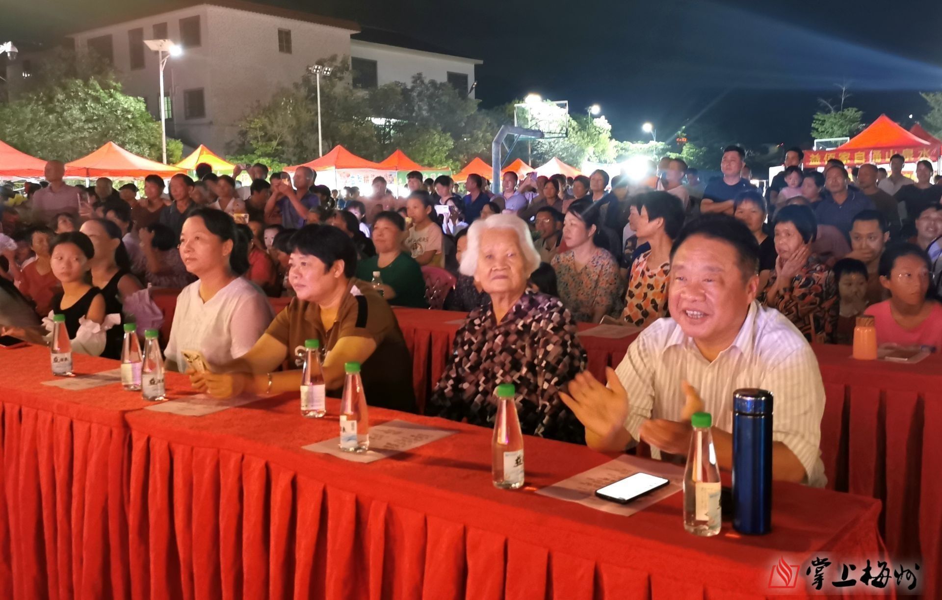 夜幕降临,村民群众早早集聚到文福镇文体广场,期待着由梅州市客家山歌传承保护中心带来的文艺视听盛宴。晚上7时30分,舞蹈《我是客家人》拉开了圩日活动文艺晚会的序幕。女声独唱《欢天喜地》、客家相声《山姑学艺》、舞蹈《祝福祖国》《天足》、山歌小戏《刘三姐》等节目轮番上演。舞台上,演员们个个精神饱满,唱念做打,倾情演绎。舞台下,观众们看得津津有味,笑声、掌声、喝彩声此起彼伏,不少群众还时不时拿出手机记录下精彩的片段与亲友分享。整场演出台上台下气氛热烈,真正让老百姓近距离感受到客家文化艺术的魅力,尽情乐享“文化大餐”。