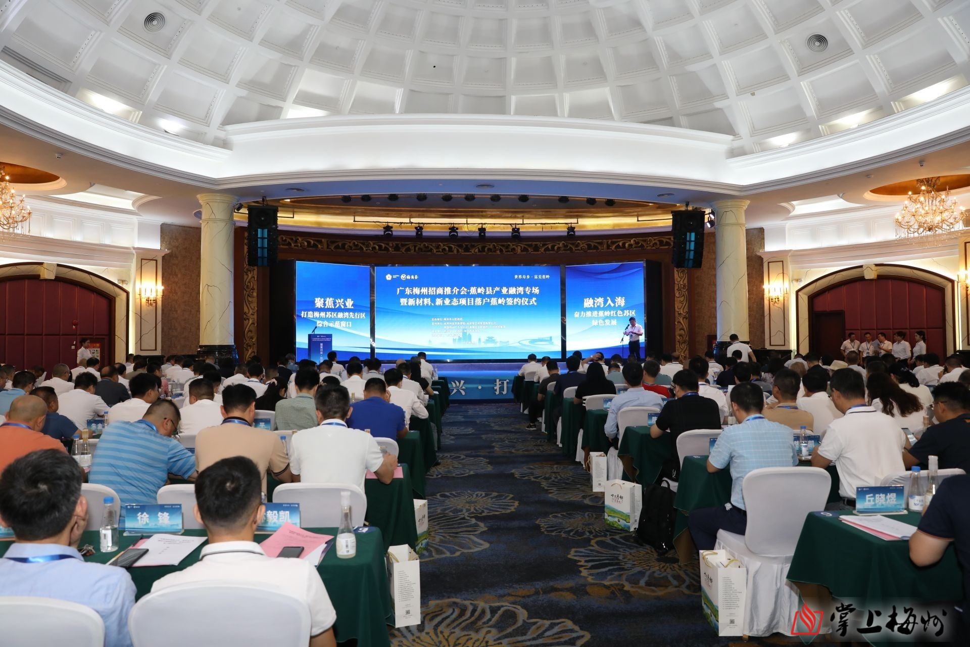 在招商推介会现场,蕉岭县与明瑞科维新材料(广东)有限公司、广东麦利信环境科技有限公司、广东桂岭控股集团有限公司、北京猫眼视觉科技有限公司、阿农山实业(广东)有限公司、云栖谷(广东)实业有限公司、梅州市锋华创业投资有限公司、理士国际技术有限公司、梅州市三盛矿业有限公司、珠海市骏豪物流有限公司10家企业签约总投资46.2亿元的项目,建成达产后年产值约47亿元、年税收2.5亿元,涵盖绿色建材、新能源、数字科技等领域。