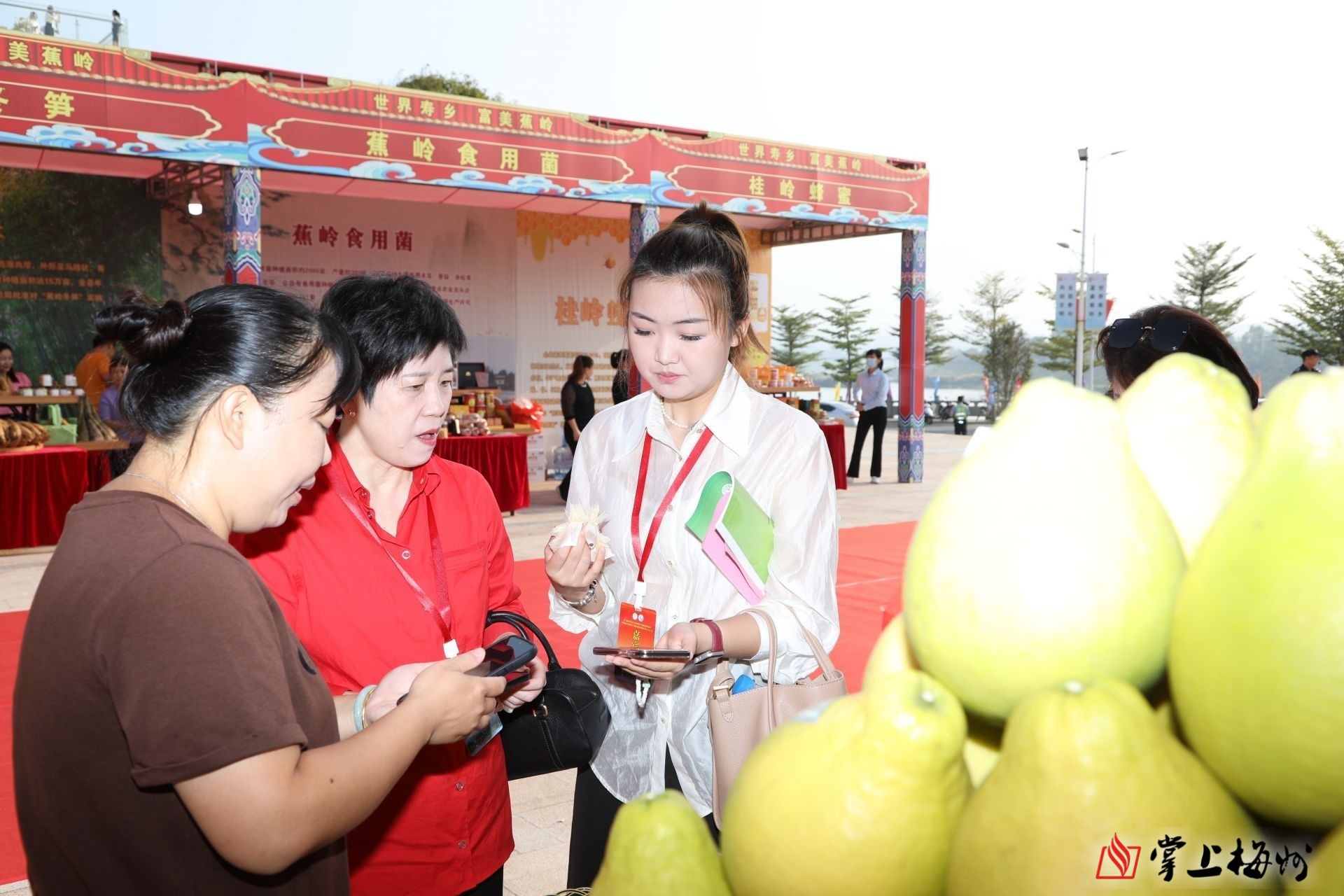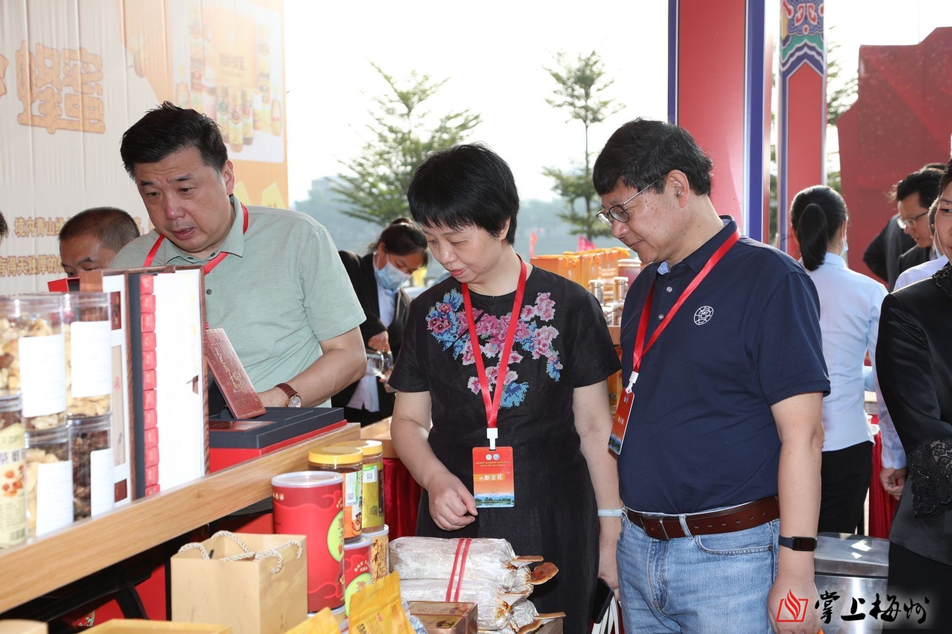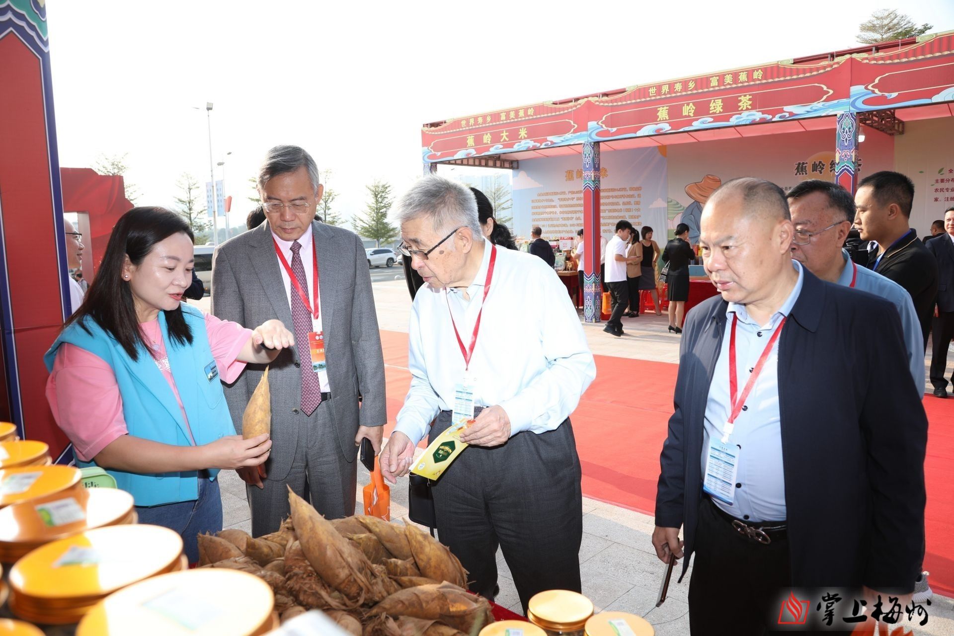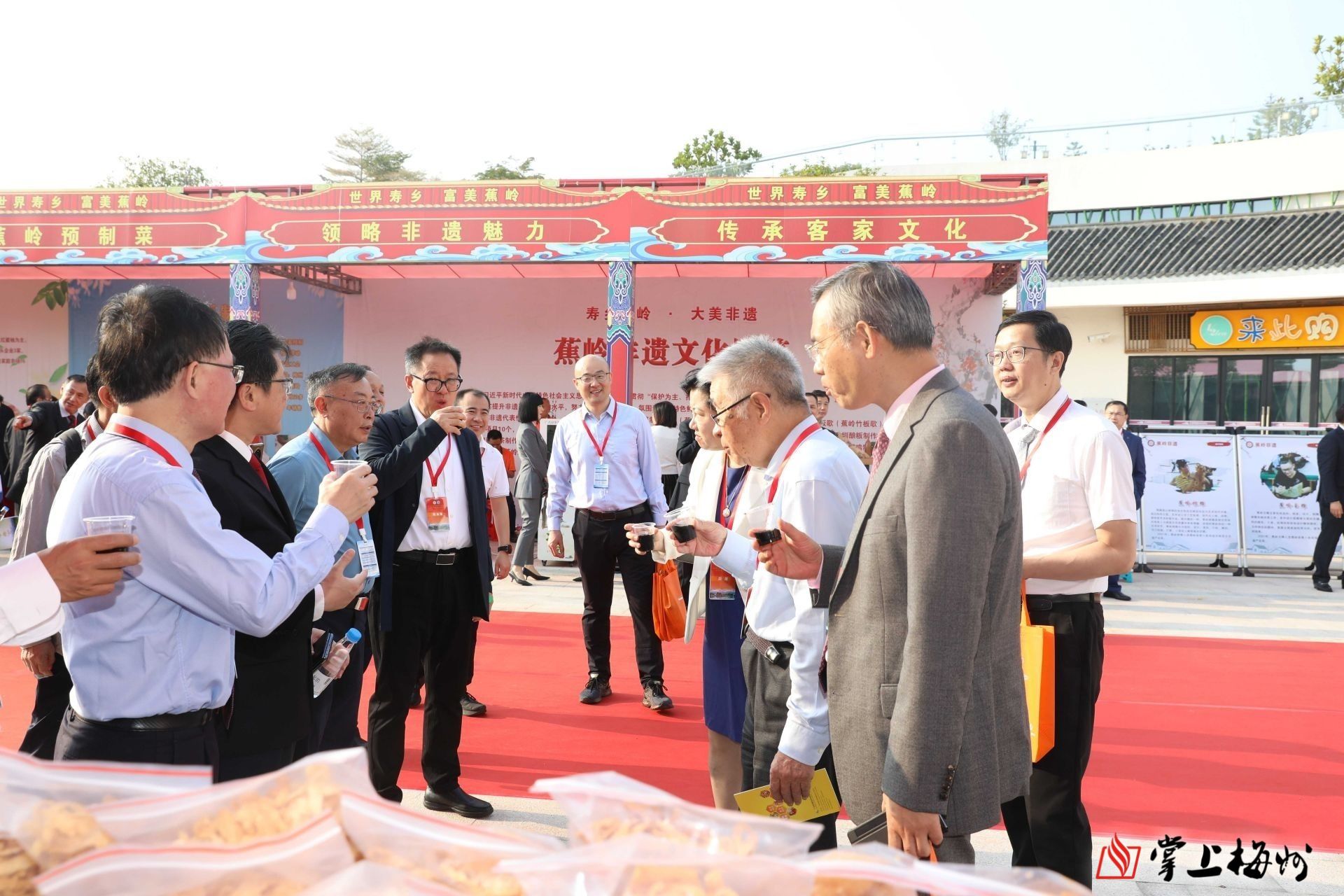 活动现场,记者看到,一个个展板介绍了广福船灯、竹编、根雕等非遗文化;一个个展销摊位上,蕉岭大米、蕉岭绿茶、蕉岭金柚、客家盐焗食品、蕉岭预制菜、蕉岭食用菌、蕉岭冬笋、桂岭蜂蜜、寿乡水等寿乡名优农产品,各种“土特产”琳琅满目、应有尽有,吸引众多与会领导嘉宾驻足观看,试吃选购。