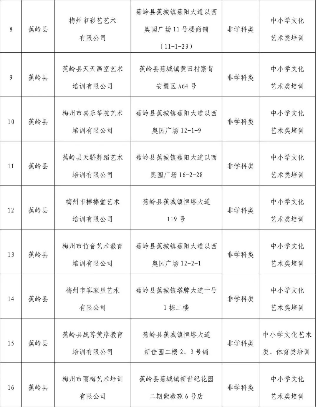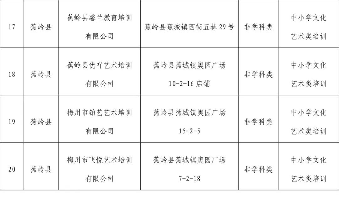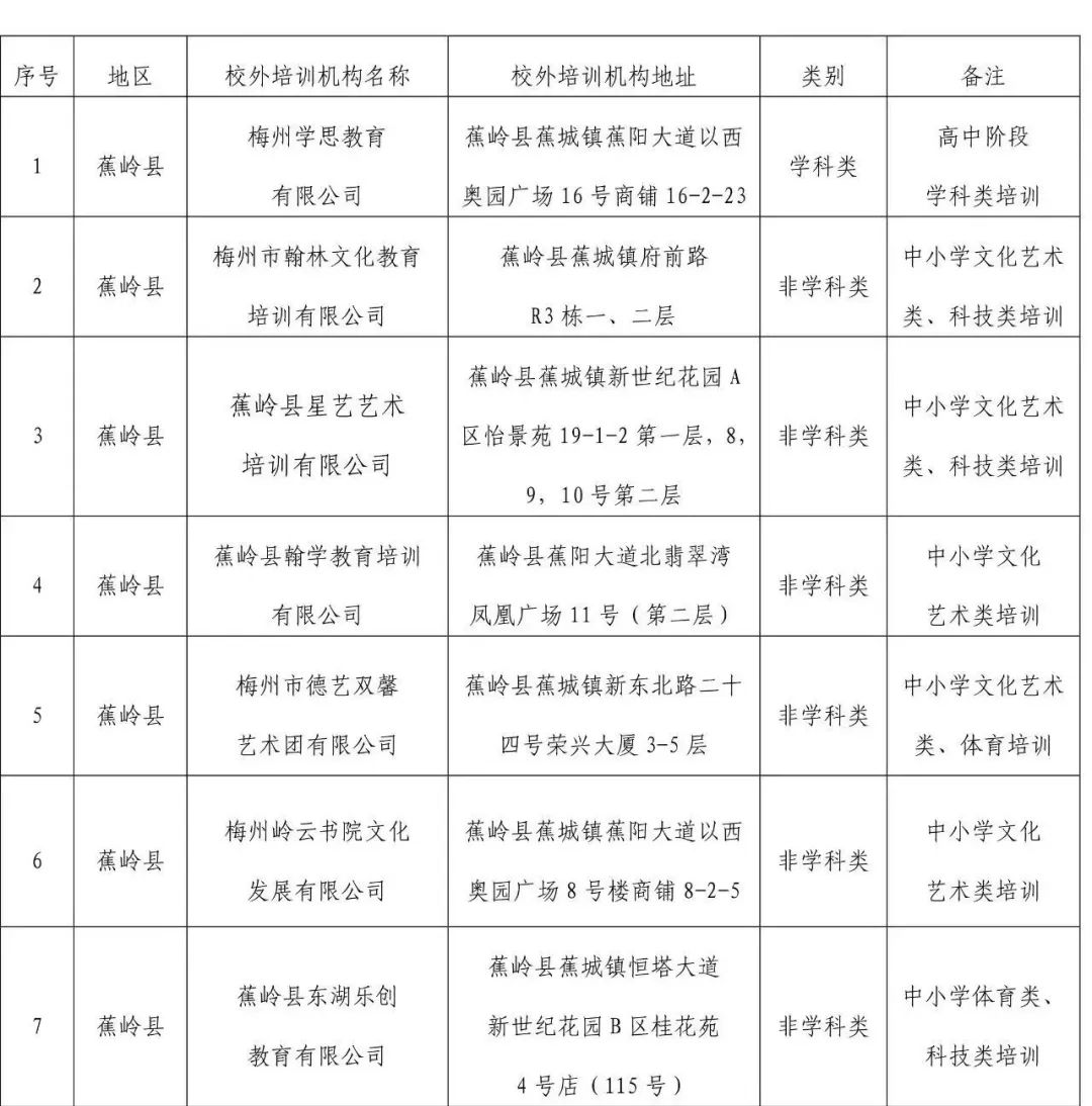 2.蕉岭县证照齐全校外培训机构名单