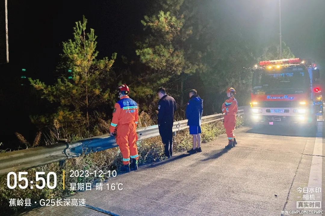 12月10日凌晨四点左右,蕉岭县公安局广福派出所接到群众钟先生的报警救助电话。经了解,钟先生在高速上驾车行驶至广福高速隧道路段时,车辆发生故障,便把车辆停在路边后下车走到护栏边,正准备跨过护栏打电话救助的时候,脚踏空地面致使钟先生跌落高速路山林下,腿部受伤,无法移动。