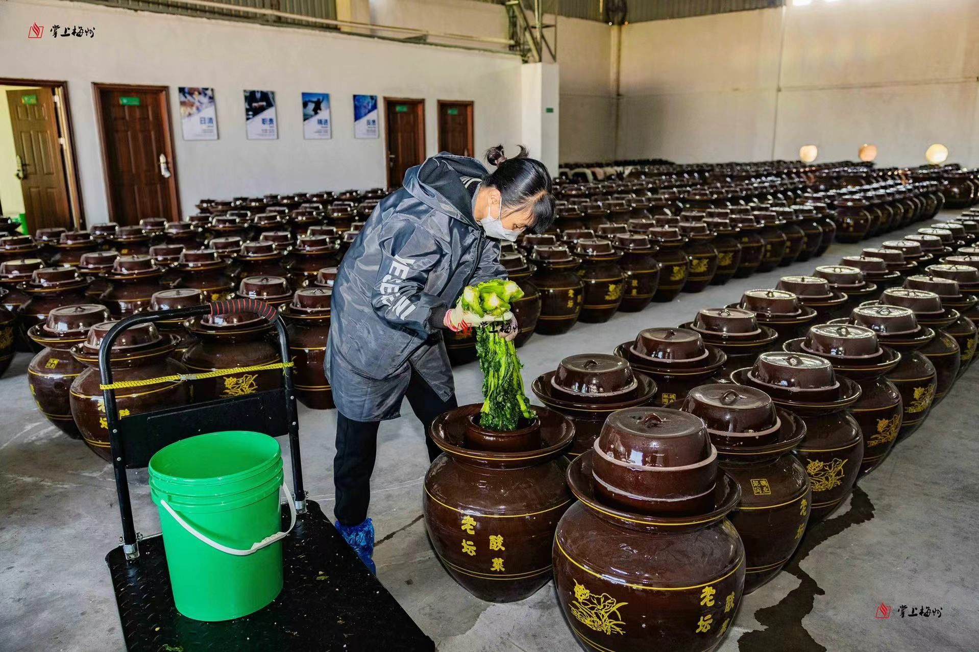 跟随钟永增的脚步,记者来到咸菜加工厂。入目而来的是成百上千的泥瓮,从门口到墙尾有序排列。工人们忙碌着把腌制的芥菜一个个装瓮封存。“待芥菜腌制出瓮后,就变成酸爽可口的咸菜了。”村民徐阿姨告诉记者,她在这里工作一段时间了,每天主要做一些挑选、腌制、装瓮等工作,日收入约120元。“从种植到采收制作,工厂都需要招人,能提供比较稳定的就业岗位。能在家门口就业,还是挺方便的。”徐阿姨说。