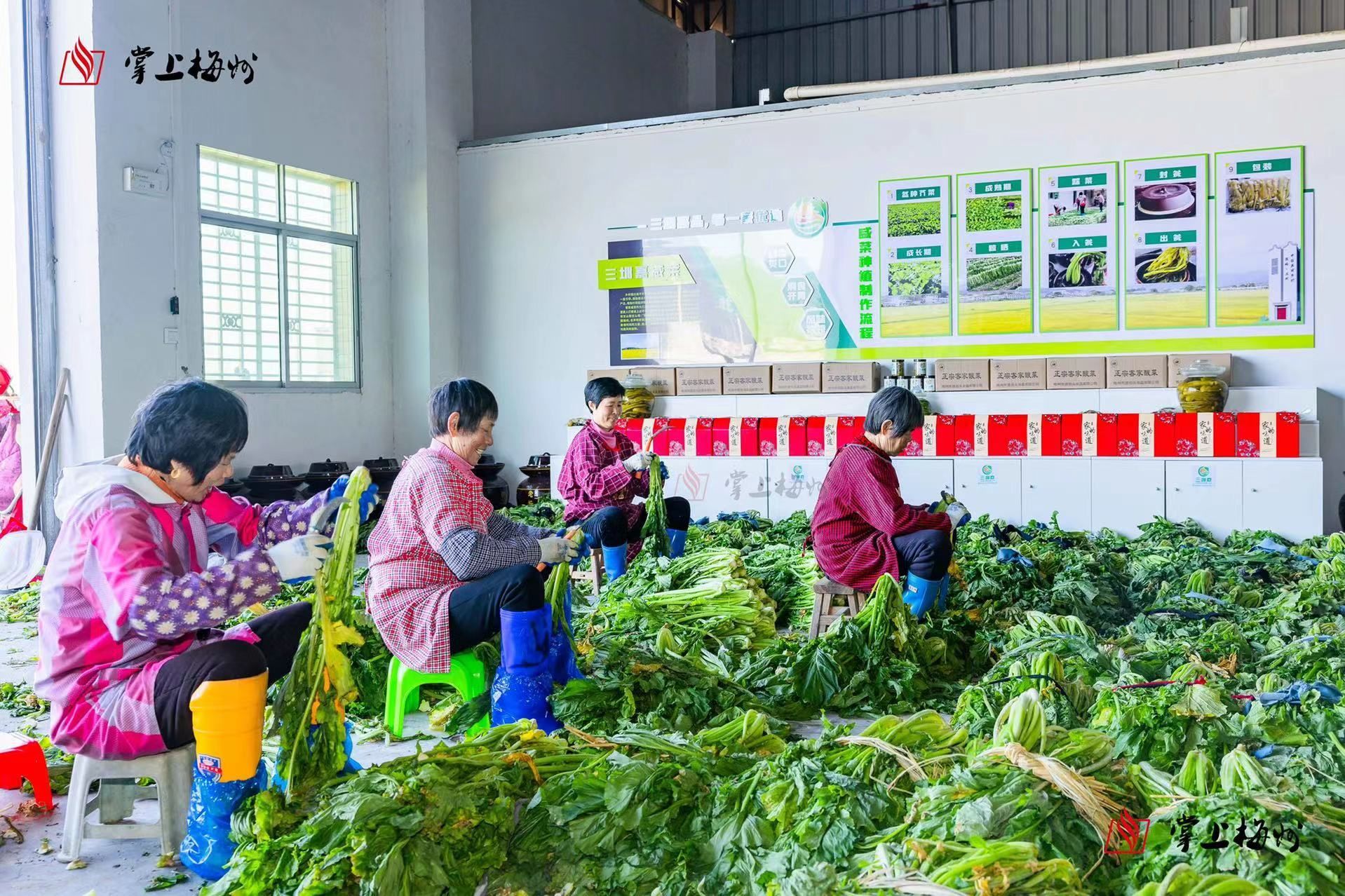 走进三圳镇招福村现代化咸菜加工厂里,好一派丰收景象映入眼帘。