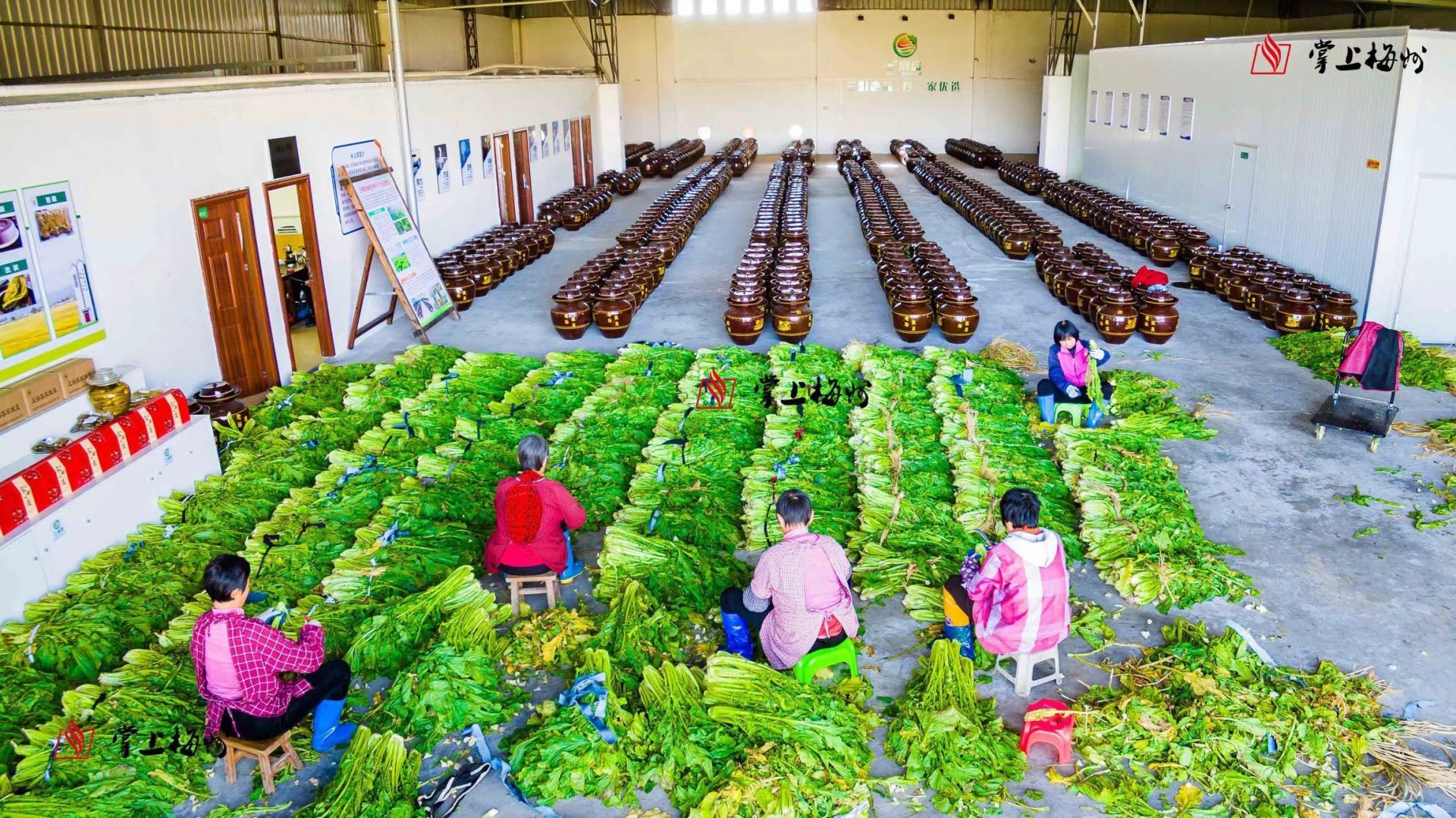 在阵阵飘香的加工厂里,村民们正在抢抓好时节腌制芥菜。