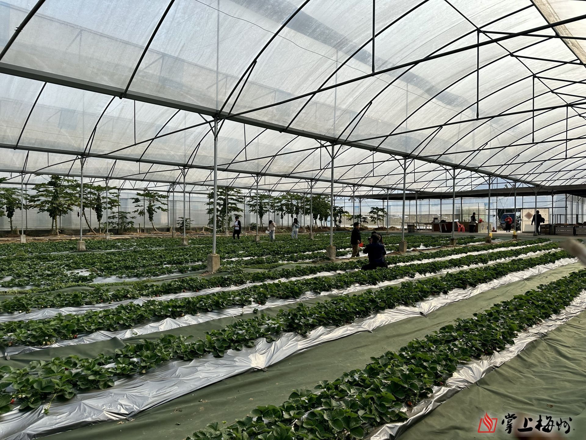 走进位于客家农夫生态园的草莓种植基地的大棚中,便可闻到阵阵的草莓香味。