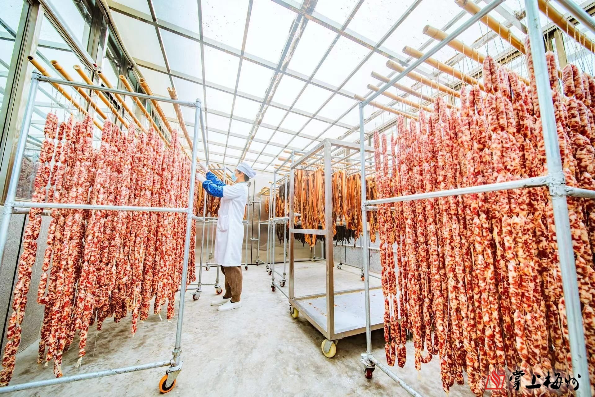 走进位于蕉岭县新铺镇的伍福长寿食品有限公司厂房看到,生产车间内一派繁忙景象,分割、清洗、搅拌、灌肠、晒干,每一道腊味食品的制作工序都有标准的工作间和工作台,工人们各司其职,积极备料,抢抓时间筹备过年餐桌上的那份“年味”。