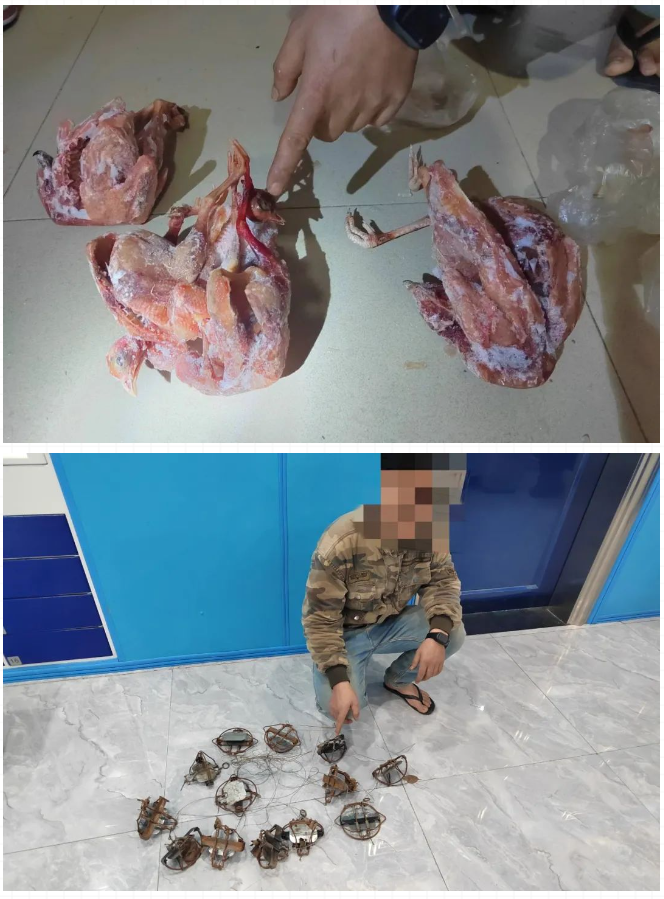 日前,森警大队联合蕉华派出所在蕉华区成功抓获涉嫌非法狩猎野生鸟类的嫌疑人岺某、杨某(均为贵州人),现场查获鸟类活体2只,缴获作案工具粘网2张,手机一部。