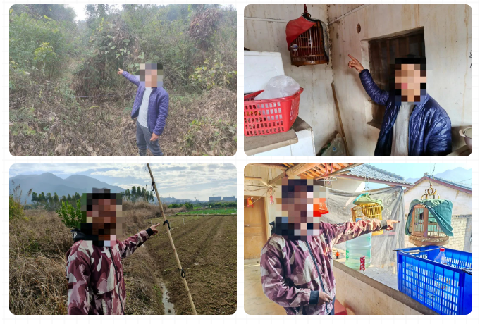 经查,犯罪嫌疑人岑某于2023年11月在蕉华区一果园内悬挂粘网,利用手机播放声音诱捕鸟类,并将诱捕到的画眉带回家饲养。犯罪嫌疑人杨某于2023年12月在其承包的菜地边沿悬挂粘网,于2024年1月6日诱捕到一只八哥,并将该只八哥带回家饲养。