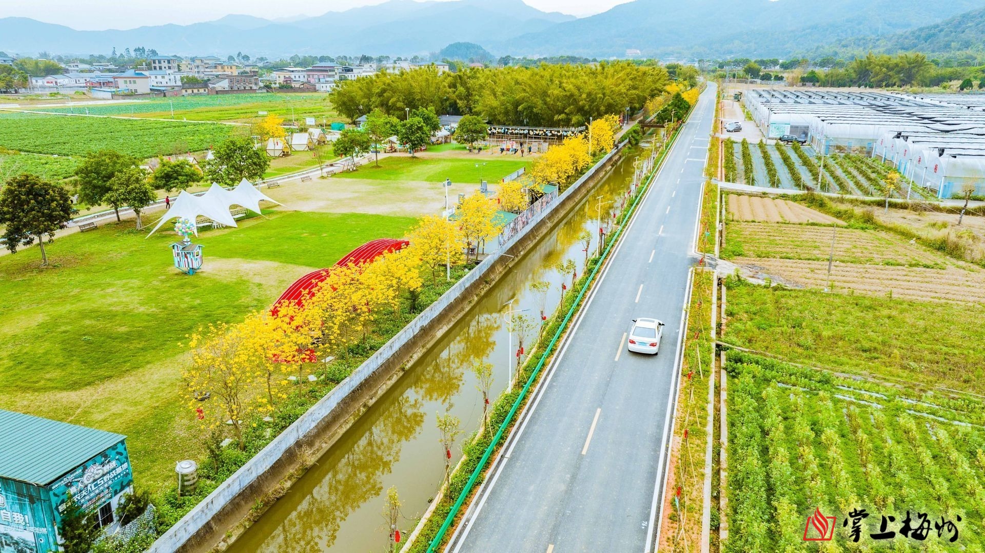 三圳镇积极发动社会力量参与,成功争取乡贤充“植”资金75万元,在九岭村培鸿乡墅-河堤路沿线(约1.1公里)开展绿化提升,共种植宫粉紫荆300多株。在提升示范线路颜值的同时,也推动沿线民宿产业、客家农夫生态园等乡村业态蓬勃发展,带动村民就业增收和乡村繁荣。