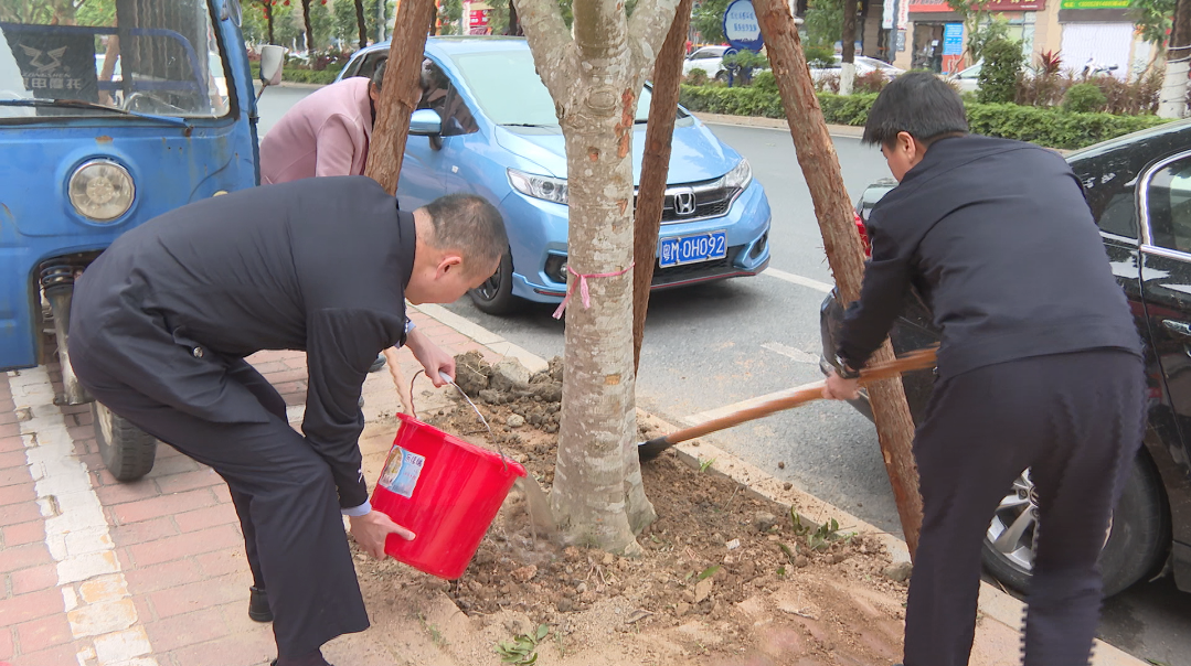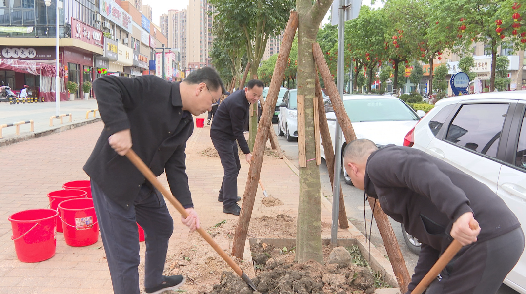 在中华大道植树现场,县委政法委、县法院、县检察院、县公安局、县司法局、县城综局领导班子成员和干部职工分工明确,挥锹铲土、扶树固根、培土踩实、提桶浇水……各个环节有条不紊,呈现出一片热火朝天的劳动景象。经过一番辛勤劳动,新种下的人面子树,迎风挺立,与周围建筑交相辉映,焕发勃勃生机。