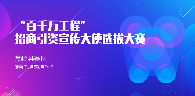 为营造“大招商、招好商”和“人人都是招商员”的浓厚氛围,推动形成“关心招商、支持招商、参与招商”的新局面,在全县范围内掀起新一轮招商引资热潮,蕉岭县将于5月至6月开展梅州市“百千万工程”招商引资宣传大使选拔大赛(蕉岭县赛区)活动。
