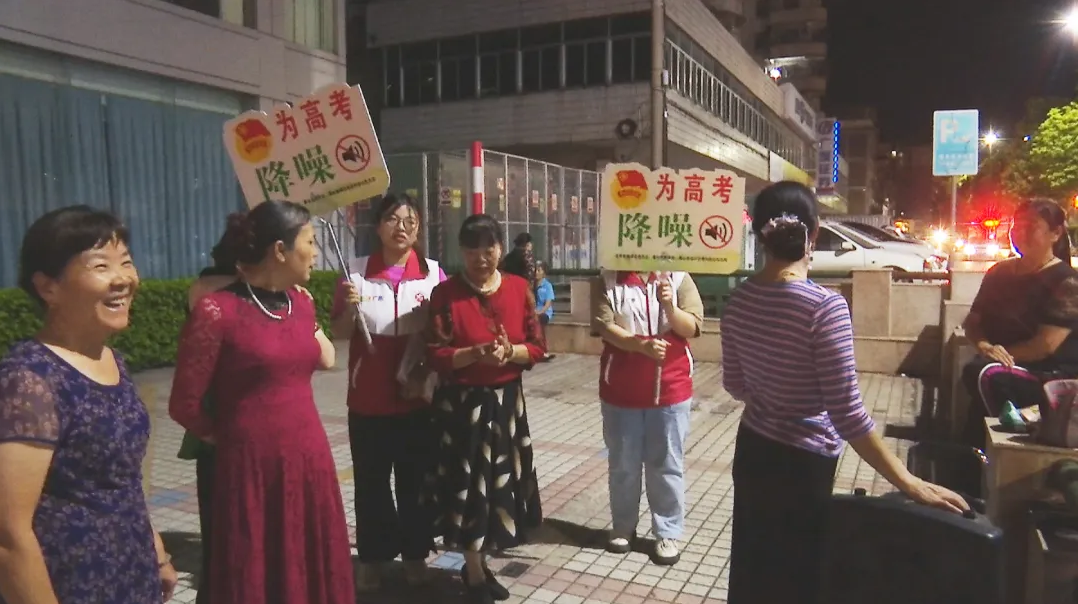 晚上7时30分,身穿红色“马甲”的志愿者们举着“为高考‘降噪’”的牌子,分组深入龙门广场、锡林公园、奥园广场等开放性场所,向广大市民发放相关倡议书,劝导广大市民从自身做起,在散步时避免大声吵闹或播放音乐;劝导广场舞爱好者文明舞蹈,注意伴奏音乐音量和舞蹈时间;劝导各行各业不使用高音喇叭举办活动;劝导广大驾驶人员在经过学校和住宅区时不鸣笛等。