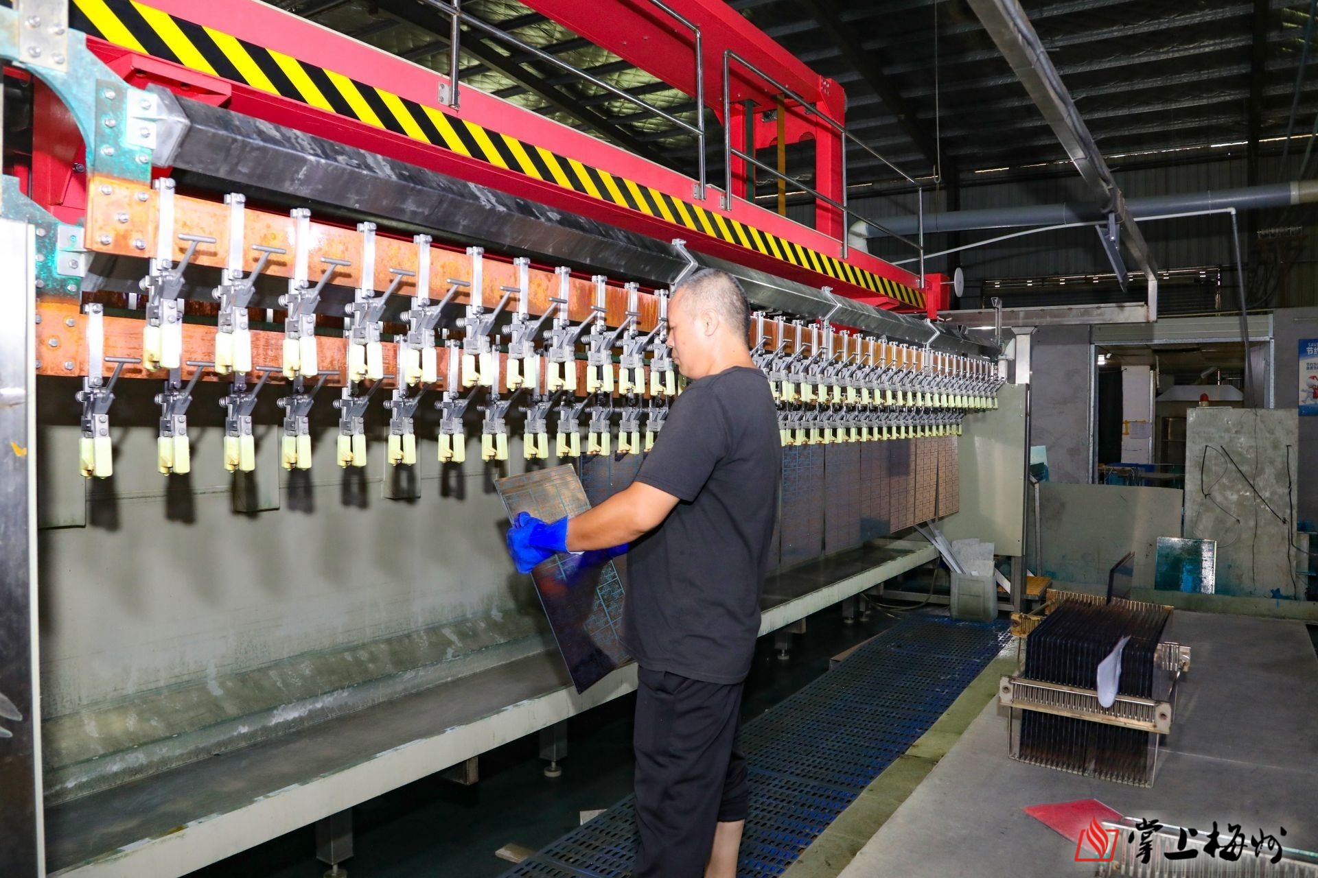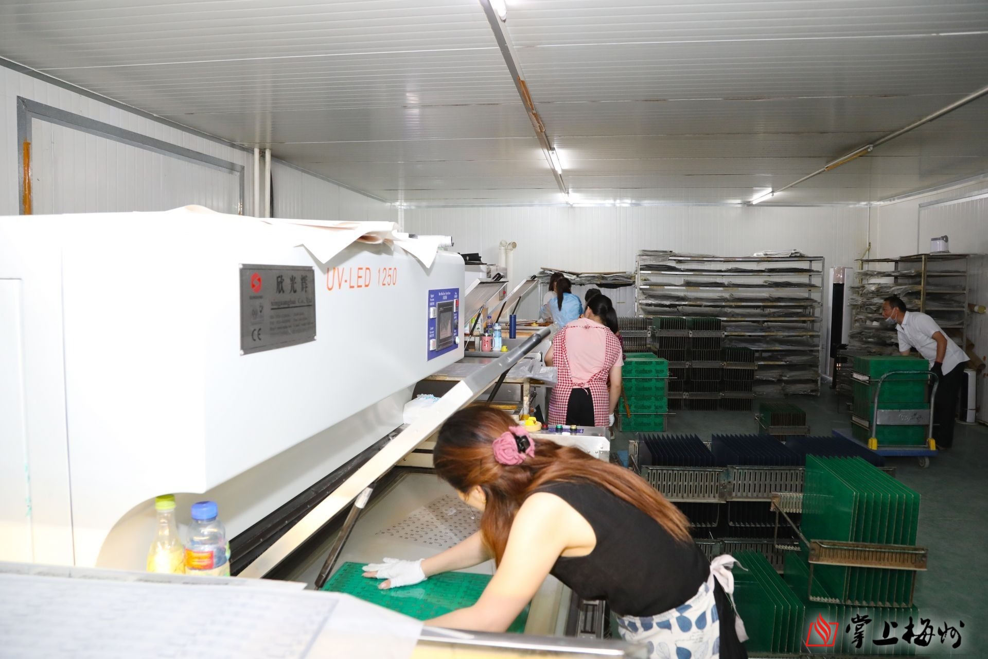 在园区内的梅州市多成电子线路板有限公司生产车间里,各条生产线上的机器运转不停,工人们在各自岗位上忙碌作业,各工段生产井然有序。