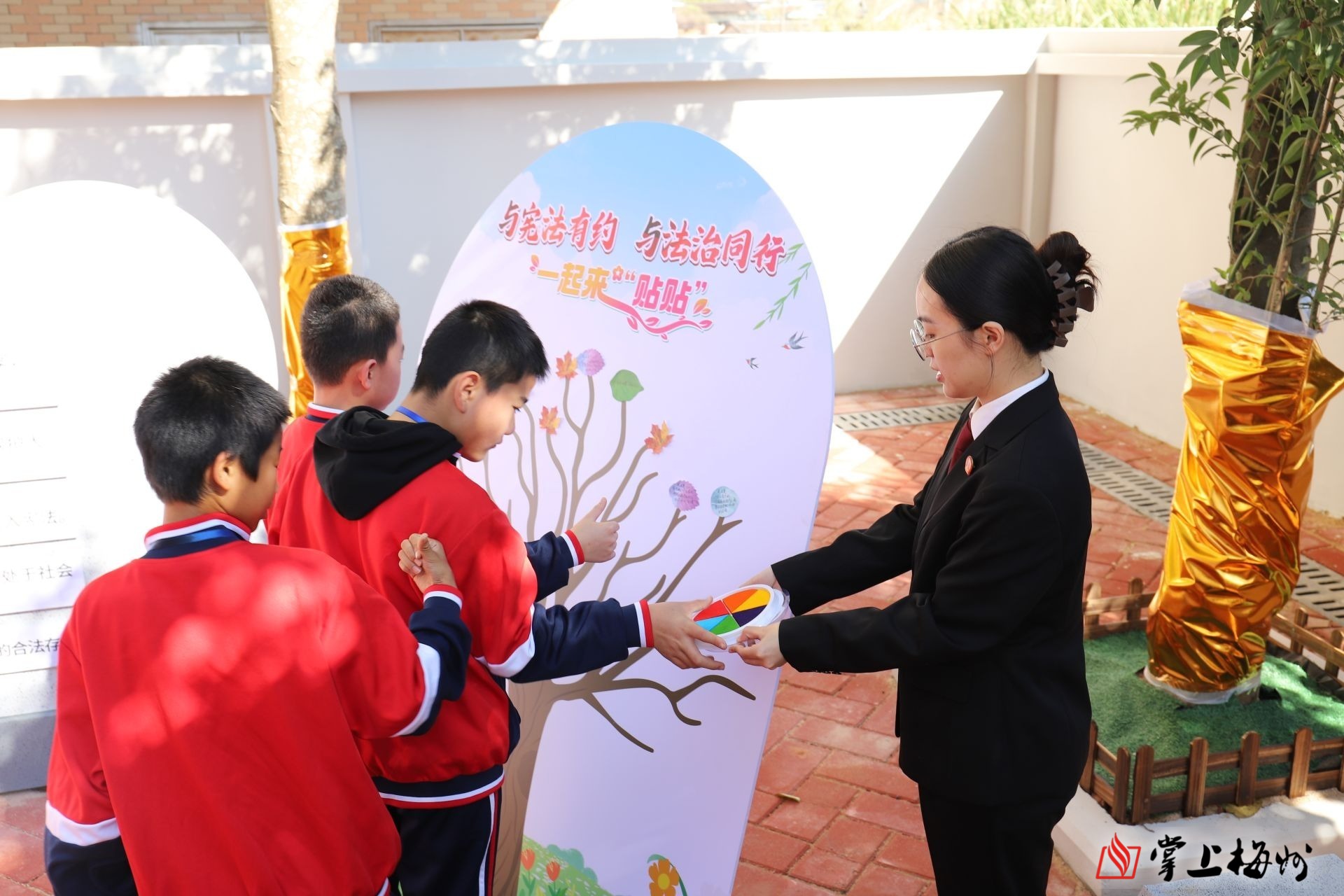 掌上梅州讯 在第11个国家宪法日来临之际,蕉岭法院邀请新铺中学50余名师生走进新铺人民法庭,以观礼见证宪法宣誓、法治“少年说”、法治游园会等形式感受法治氛围。