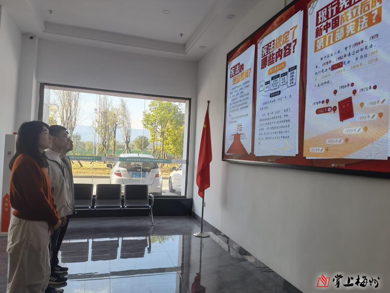 着力多元联动宣传。一方面,普法队员利用微信工作群、普法公众号等新媒体开展非接触式的线上普法宣传,面向单位员工推送形式多样、内容丰富的法律法规和宪法知识问答;另一方面,普法队员借助客家地区“赶圩日”人流集中的时机,通过进店铺发放宣传材料、以案说法、张贴宪法宣传海报和放置宪法宣传移动展板等宣传方式,进行宪法解读,普及宪法知识,切实增强广大群众的法律意识。