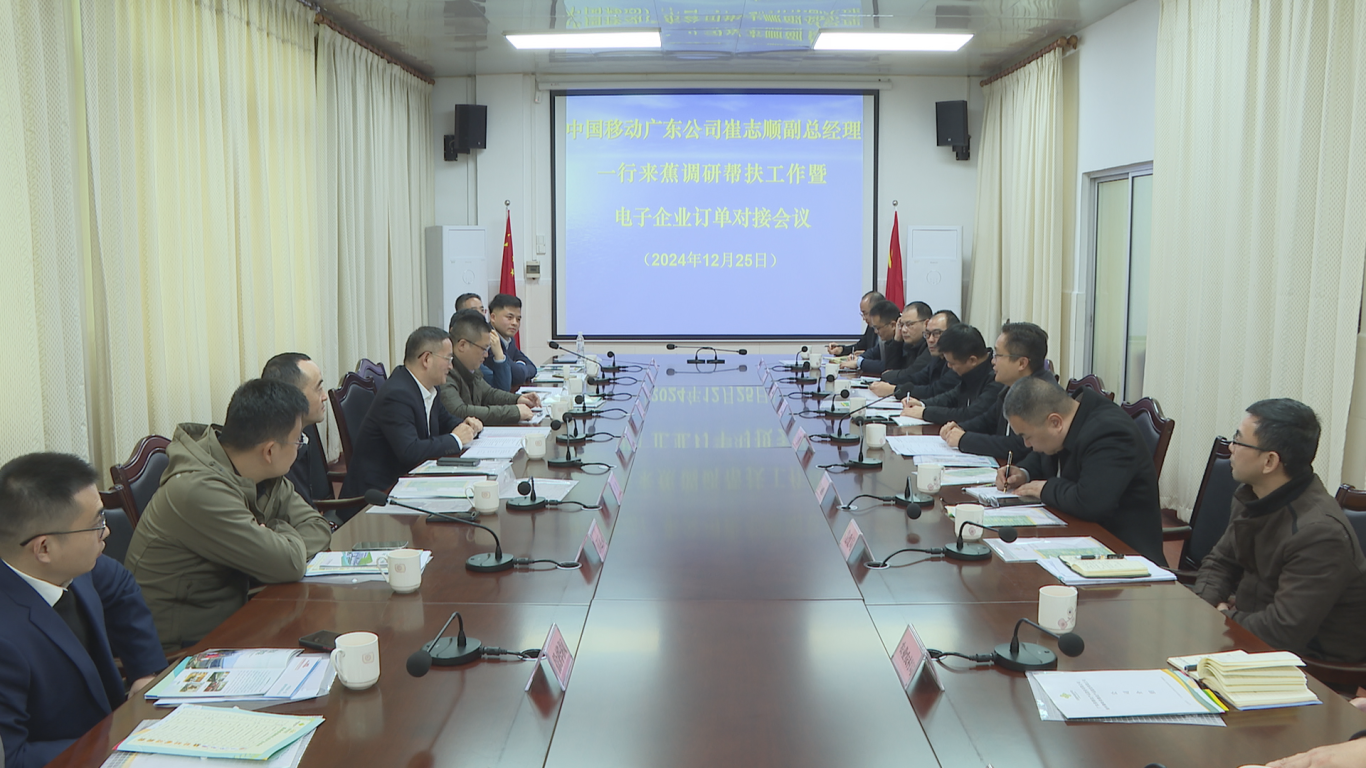 12月25日,中国移动通信集团广东有限公司到蕉岭调研帮扶工作暨开展电子企业订单对接,强化供需对接,创新帮扶模式,积极探索资源共享、优势互补的新路径,助力蕉岭加快高质量发展,加力提速“百千万工程”。