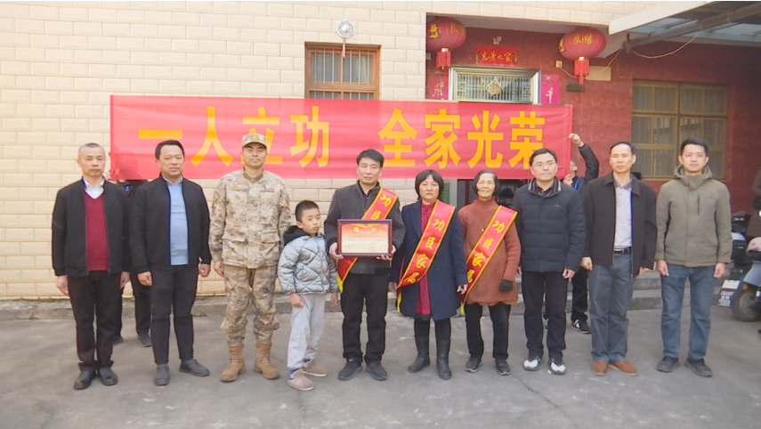 立功喜报送到家,拥军优属暖人心。日前,蕉岭县委常委、县人武部领导王晓峰率领蕉岭县人武部、县退役军人事务局、蕉城镇相关负责人为荣立三等功的现役军人徐小超家属送上立功喜报,让军属共享尊崇荣光。