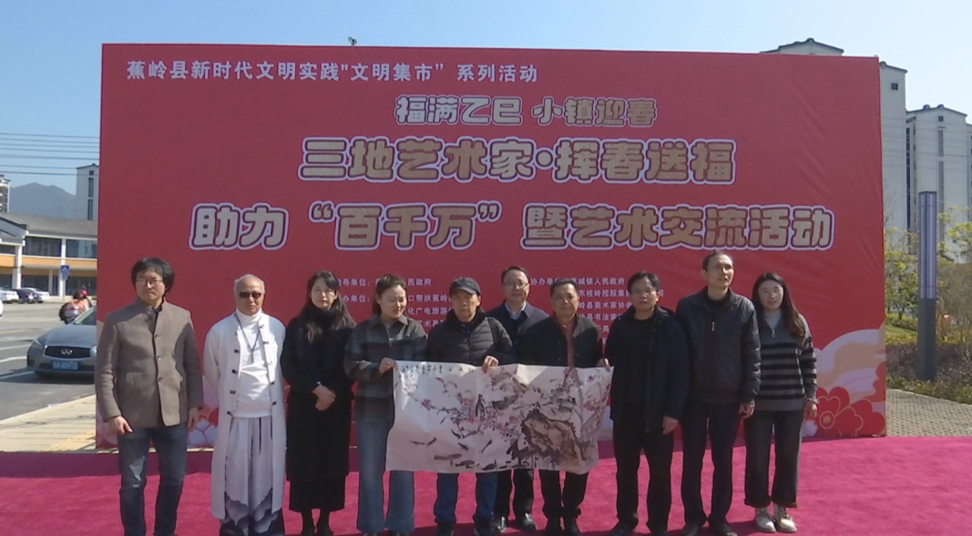 为营造浓厚的春节节日文化氛围,弘扬中华传统文化的内涵,1月20日,由番禺区对口帮扶协作工作队牵头,蕉岭县文化广电旅游体育局、蕉岭县文学艺术界联合会、番禺区文学艺术界联合会、上杭县文学艺术界联合会等单位共同主办的“三地艺术家·挥春送福助力‘百千万’暨艺术交流活动”在蕉岭广州小镇隆重举行。此次活动通过邀请番禺区、上杭县、蕉岭县三地的美术、书法家在蕉岭广州小镇进行书写春联、绘画创作免费送给群众的形式,祝贺广州小镇居民入住新居,为广大群众送去新春的祝福。副县长陈春妮,副县长、番禺区对口帮扶协作工作队队长周锐明参加活动。