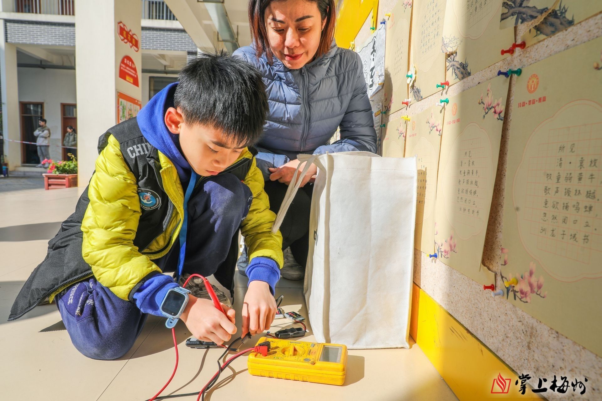 比赛期间,少年选手正在检测电池。