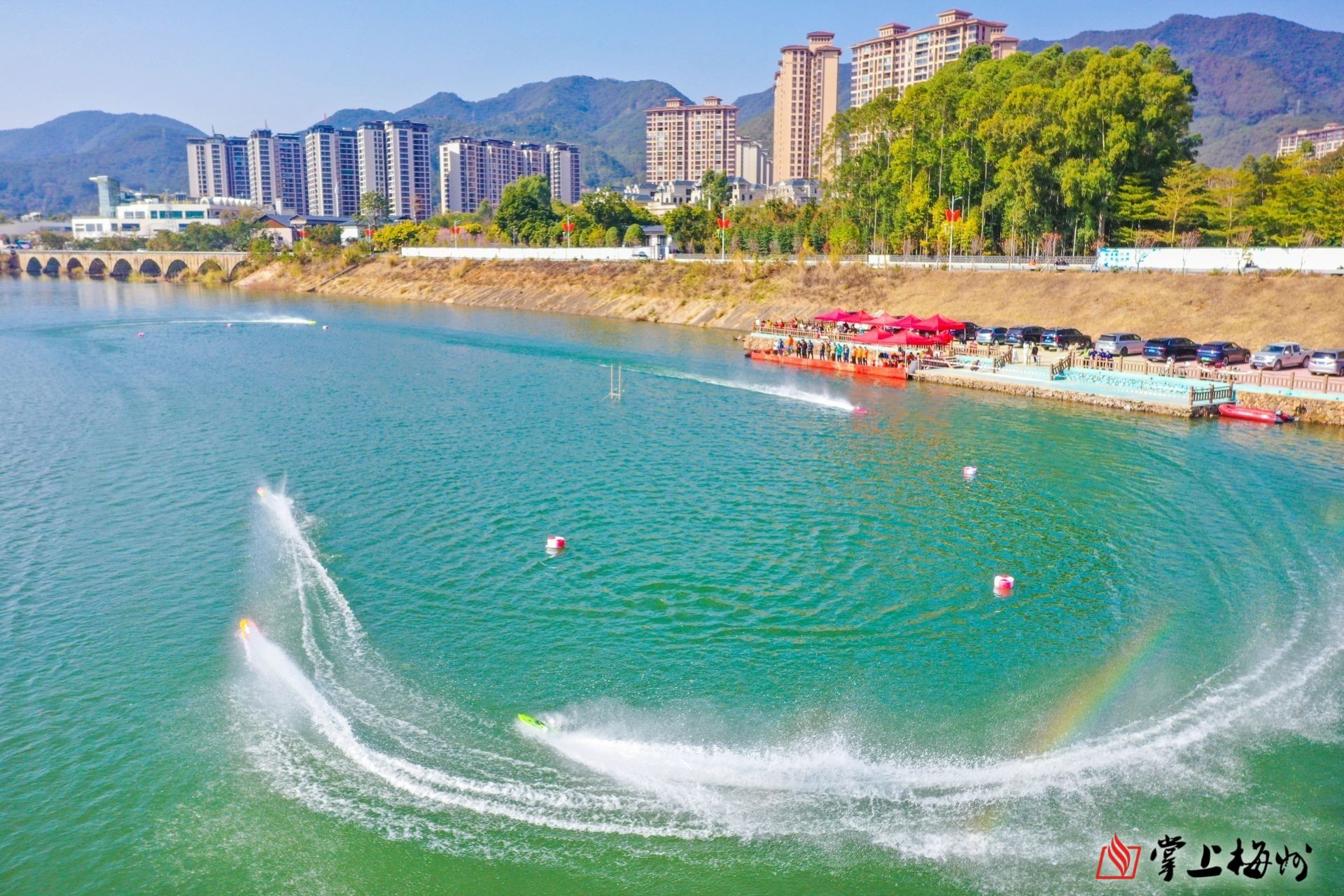 石窟河畔,冬日暖阳,一场体育盛会吸引了全省的目光——2024年广东省航海模型锦标赛在蕉岭举行。来自全省各地的选手在石窟河畔展开激烈角逐,演绎了一场水上版“速度与激情”。旖旎风光下,“快艇”飞驰、千帆竞发,引擎轰鸣声、观众喝彩声不绝于耳,碧水如玉的石窟河面上水花飞溅,动静结合、乘风破浪,围观的观众惊叹连连……
