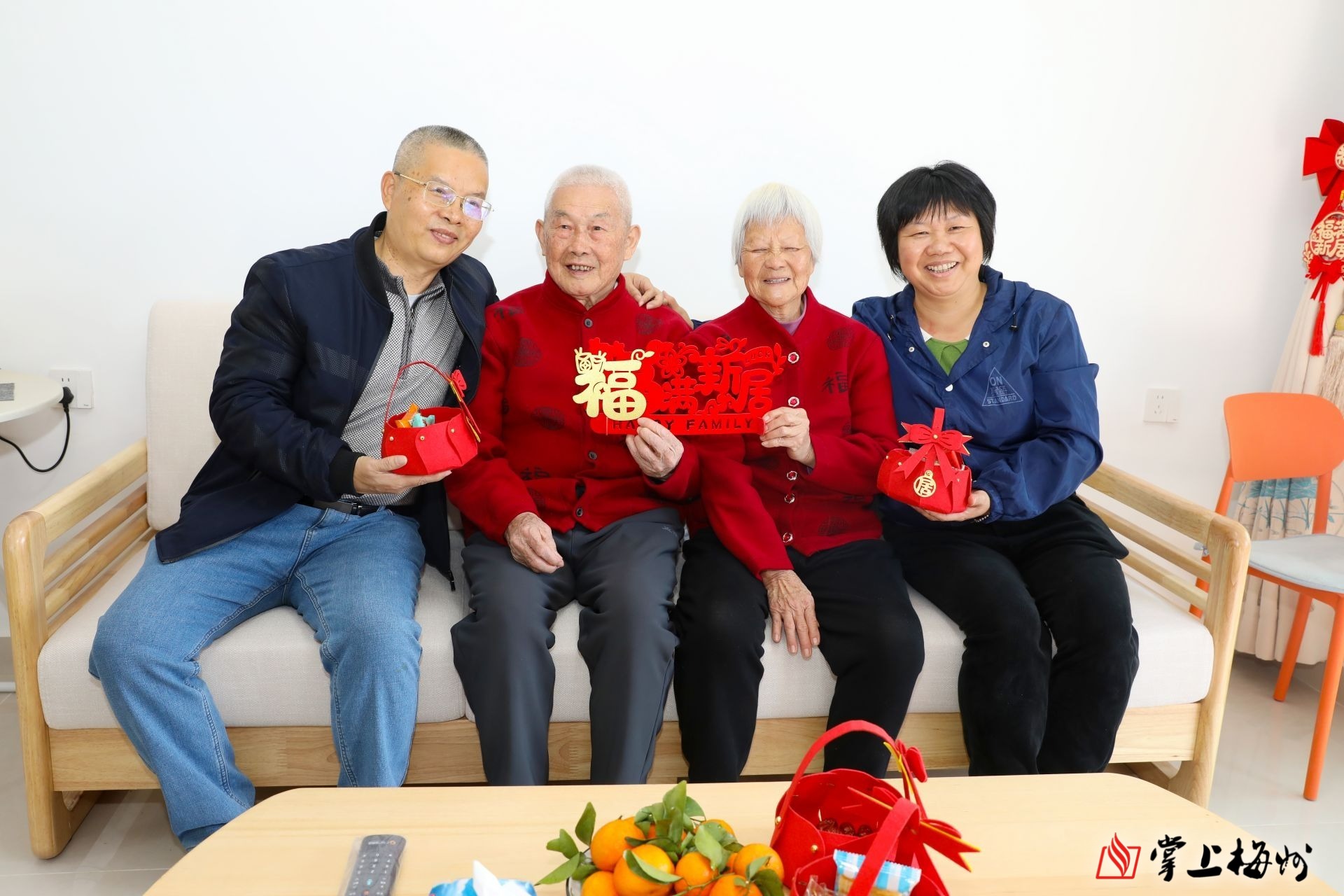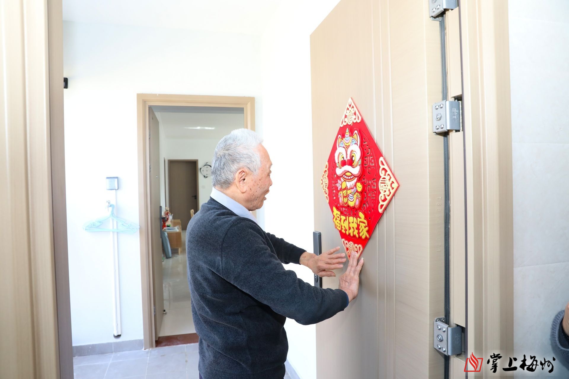 1月24日上午10点,和煦的暖阳洒落在宽敞明亮的阳台上,蕉岭广州小镇的入户群众陈海祥正站在客厅中央,小心翼翼地拿着一卷红彤彤的“福”字,仔细地比对位置,准备贴上墙。不远处,新购置的智能煮水壶中,开水正咕咕冒着热气。见记者前来,陈海祥泡了热茶热情招待。“真的很感谢党和政府的关爱!我这辈子都没有想过可以住上这么好的楼房,更没想到还有那么好的橱柜和厨电。”陈海祥的喜悦之情溢于言表。