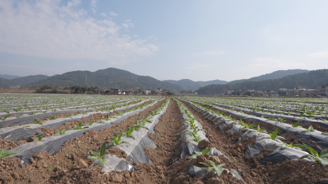 在全市最大的村级烟草基地、梅州烟草核心产烟区——广福镇石峰村烟叶种植示范基地,只见一垄垄嫩绿烟叶整齐排列,生机盎然。