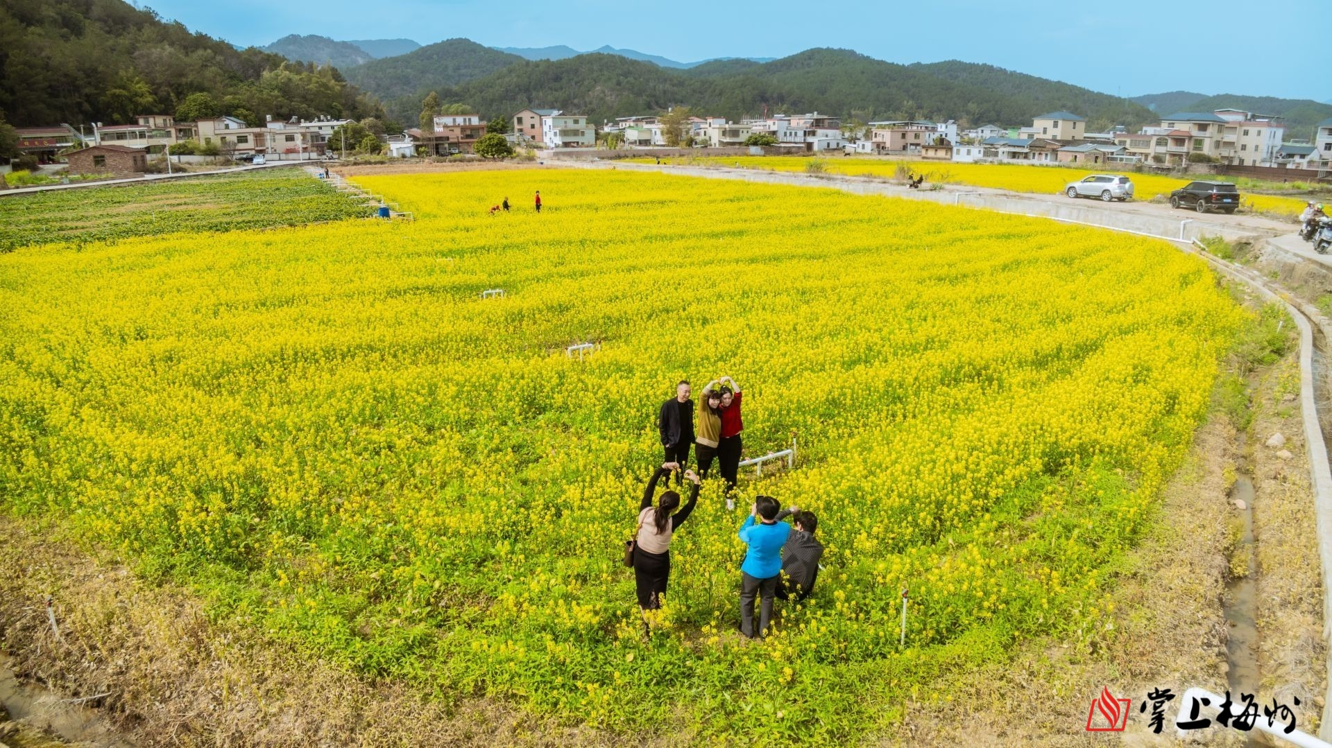 蕉岭县文福镇乌土村成片的油菜花盛开,吸引不少游客前来观光。