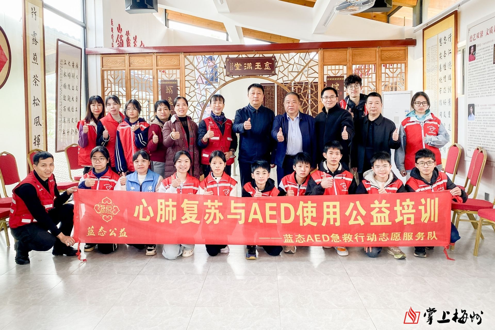 今年3月8日是第115个“三八”国际妇女节。为提升基层应急救护能力,守护群众生命安全,广东蓝态幸福文化公益基金会当天为梅州市蕉岭县文福镇仓海诗廊游客中心举行自动体外除颤器(AED)捐赠仪式,并组织30多名妇女和镇村应急相关人员、小志愿者们现场进行了心肺复苏与AED使用公益培训。